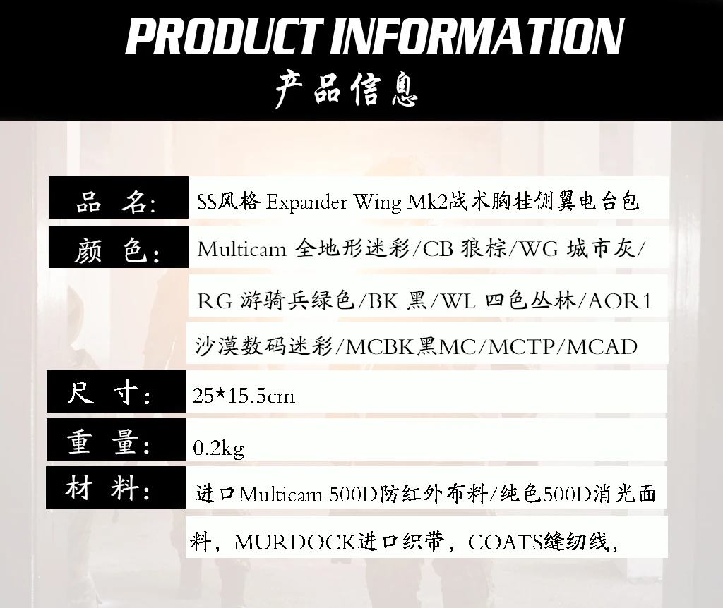 Expansor de pecho para chaleco táctico, paquete de Radio de ala colgante, bolsa de interfono, estilo SS, Mk2