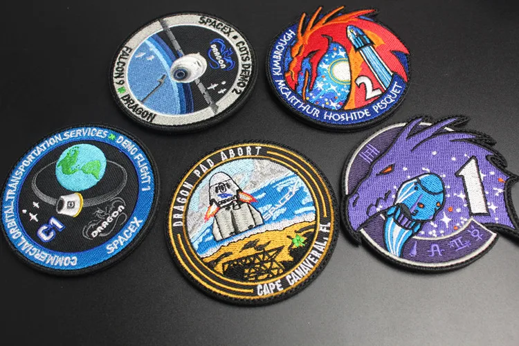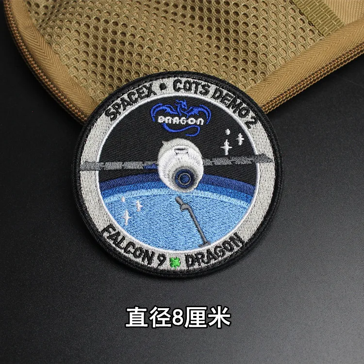 Diseño: Insignia bordada 3D de la misión del Dragón astronauta Falcon 9