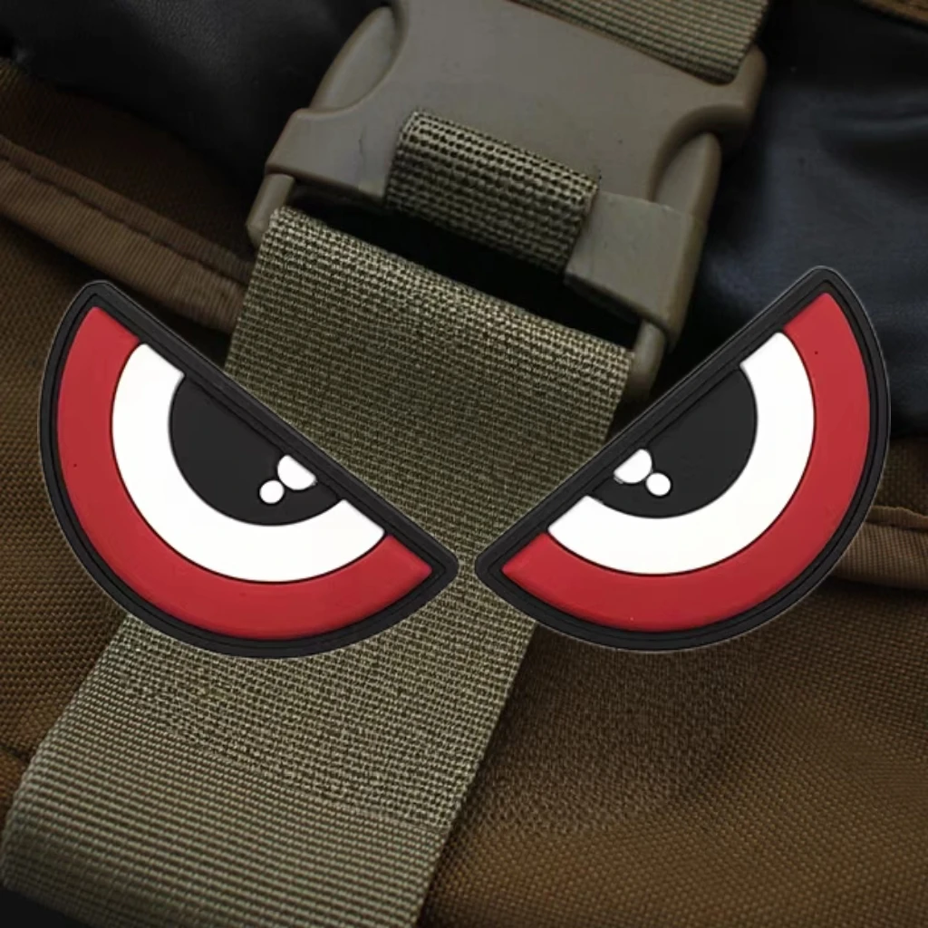 EYES-Parche de goma suave de PVC 3D, insignia de moral de gancho y bucle táctico DIY, pegatinas decorativas divertidas para mochila, parches para ropa