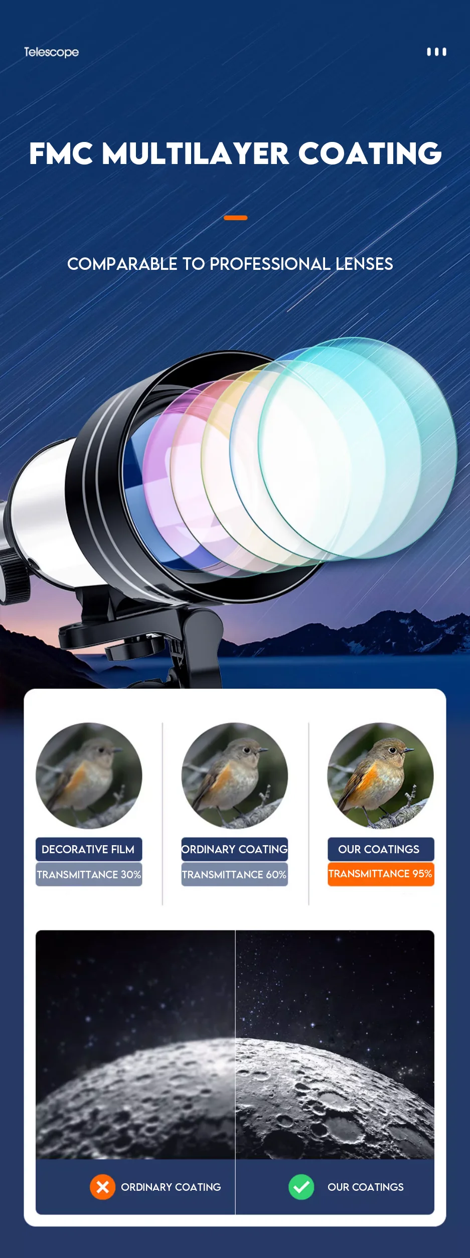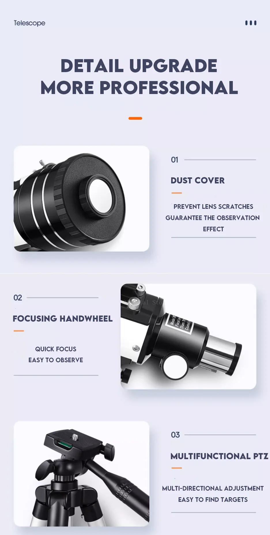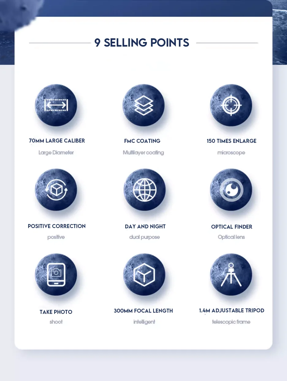 2.Puede observar la nebulosa, la luna y la marte, muy adecuado para aficionados y estudiantes.