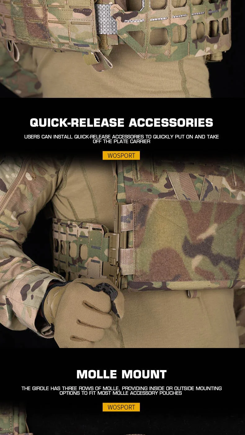 Chaleco táctico MOLLE, fajín de liberación rápida, portador de placa KZ ajustable, faja ligera, accesorios para chaleco Airsoft de caza