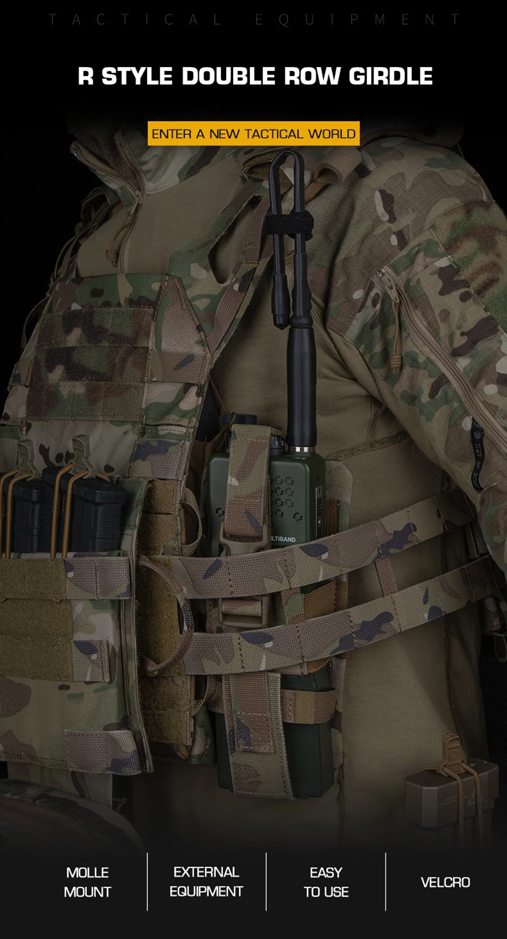 Faja portadora de placa táctica serie R estilo 2 bandas estructurales de liberación rápida faja de doble fila para chaleco de caza JPC AVS SPC