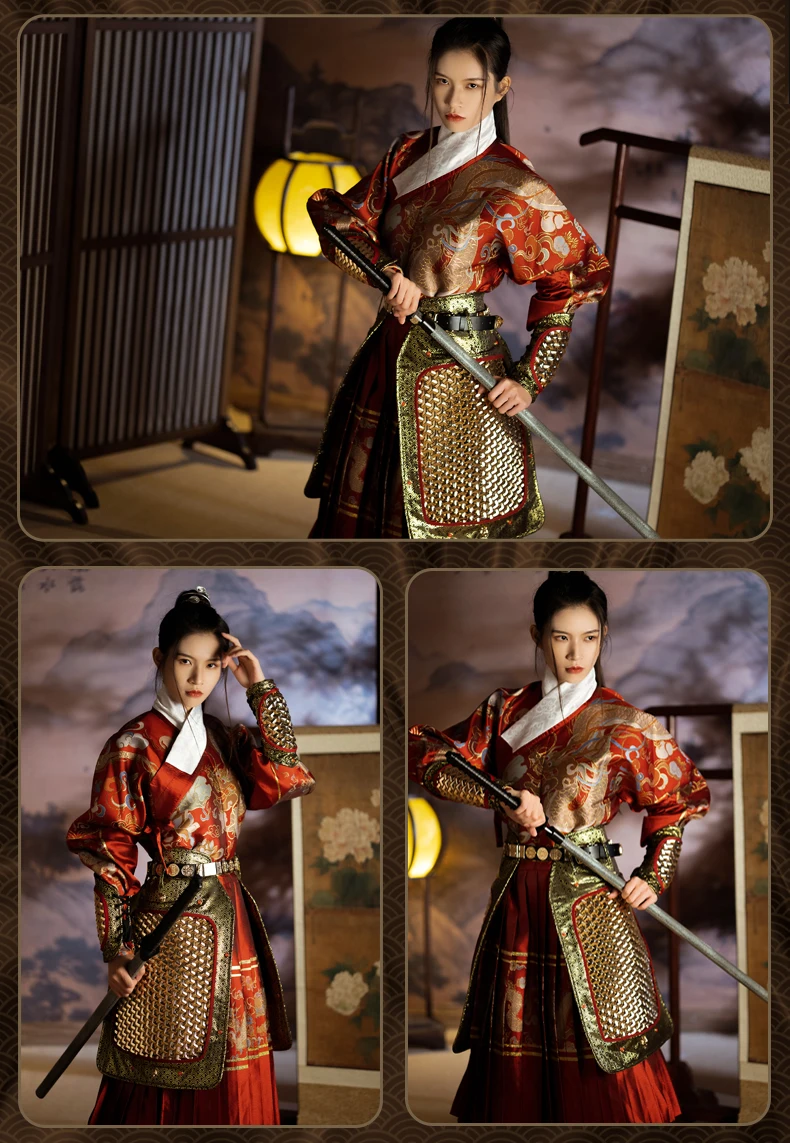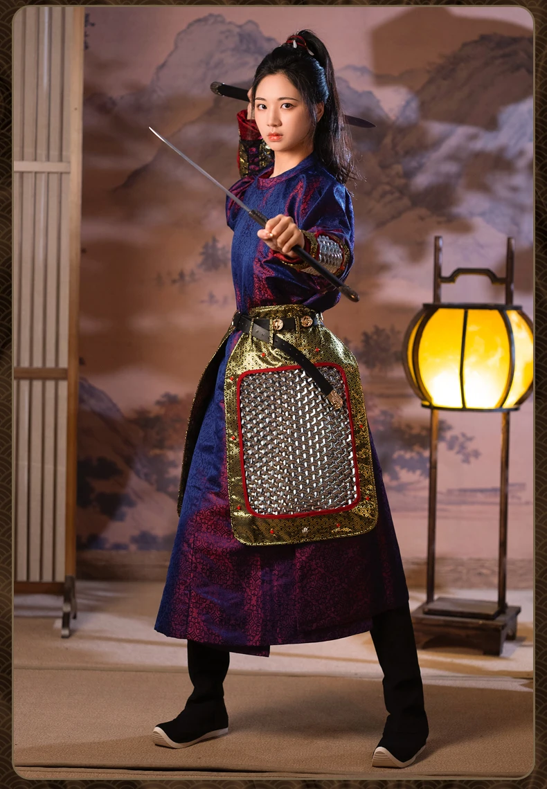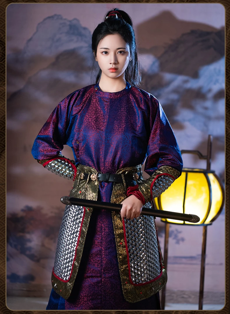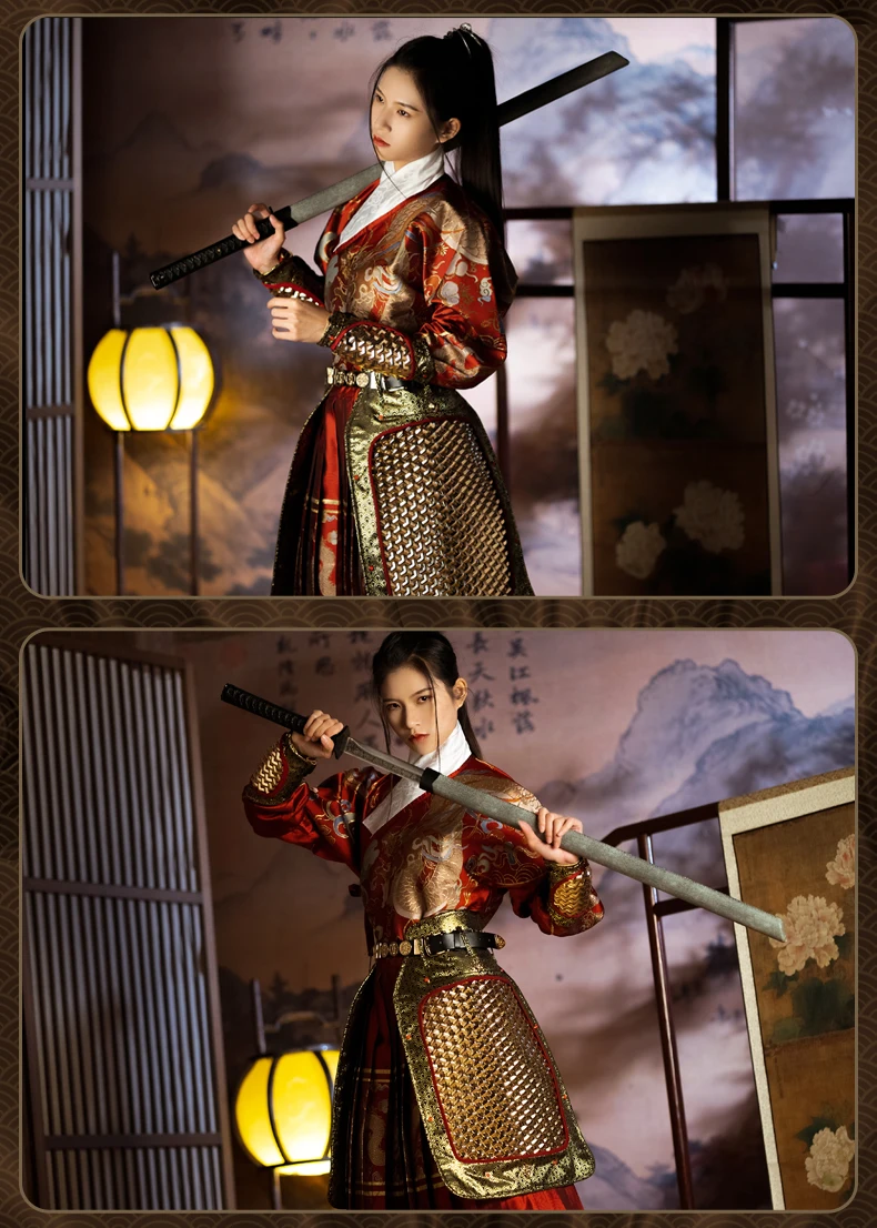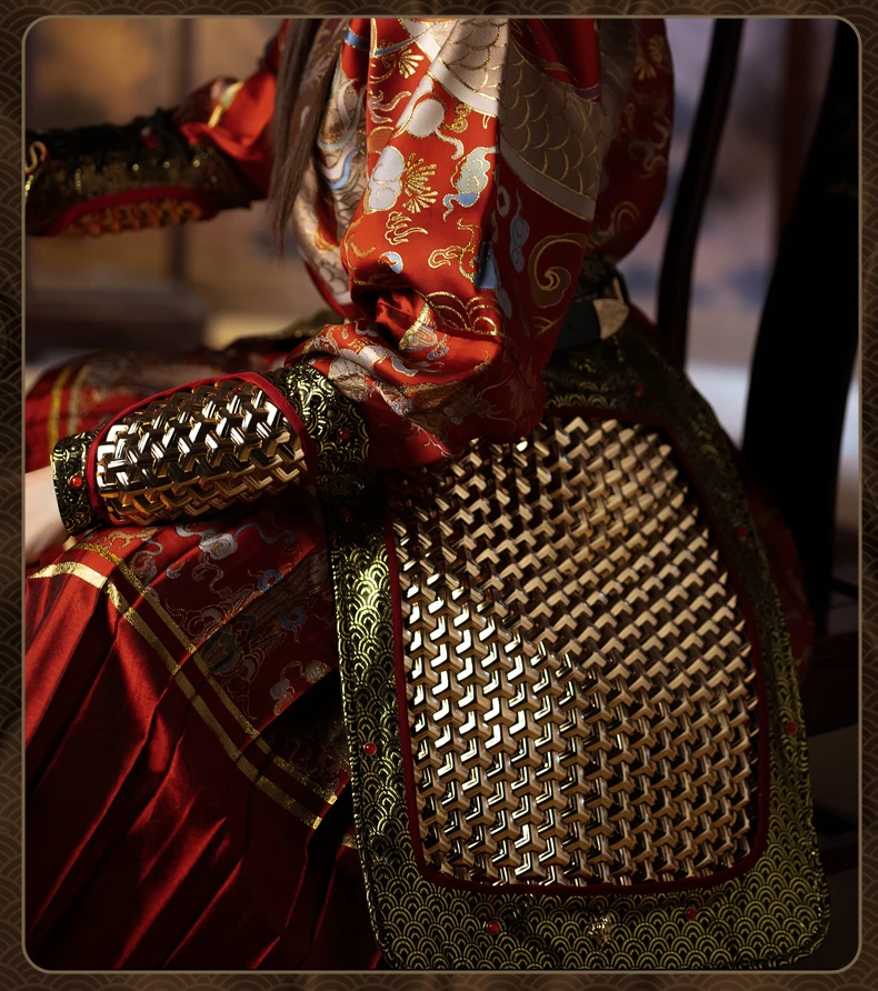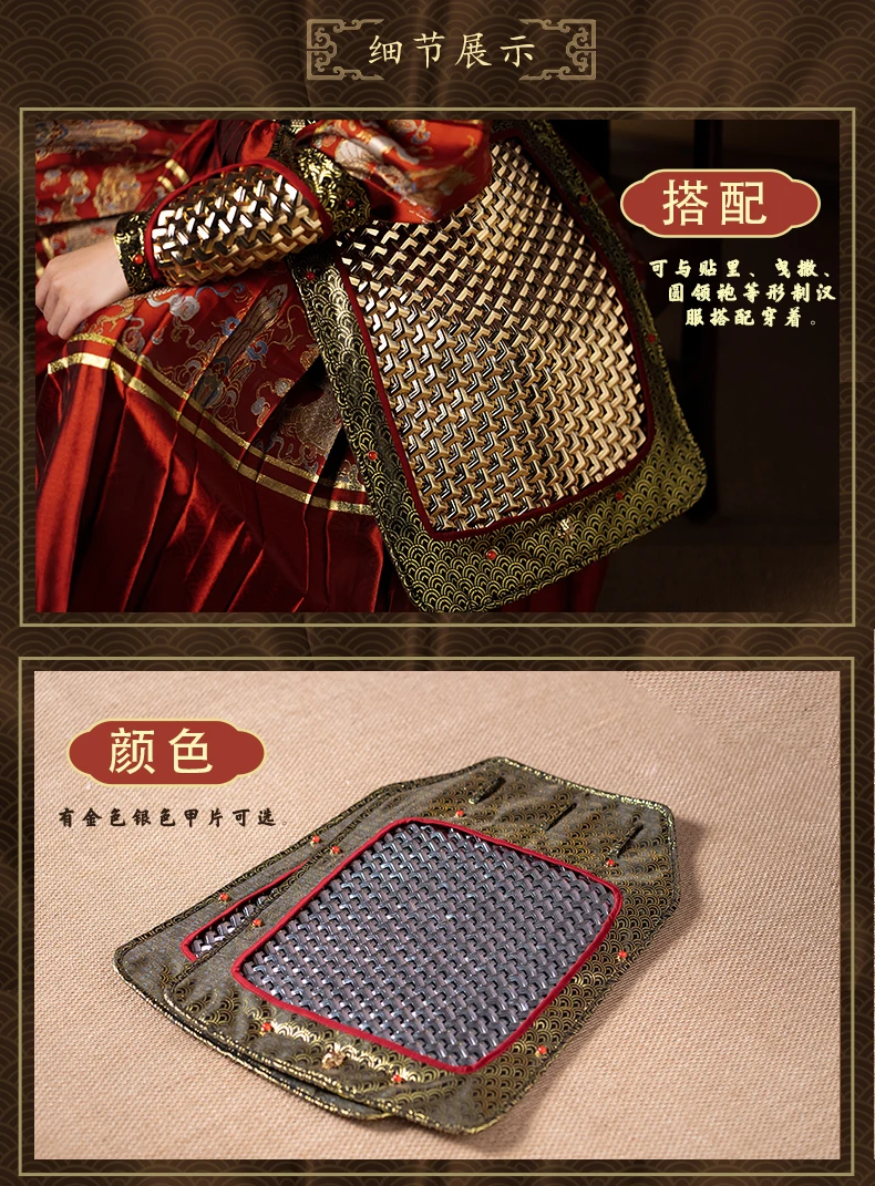 Falda blindada, armadura de armadura china, se puede combinar con traje de pez volador Hanfu, bata de cuello redondo, protector de brazo