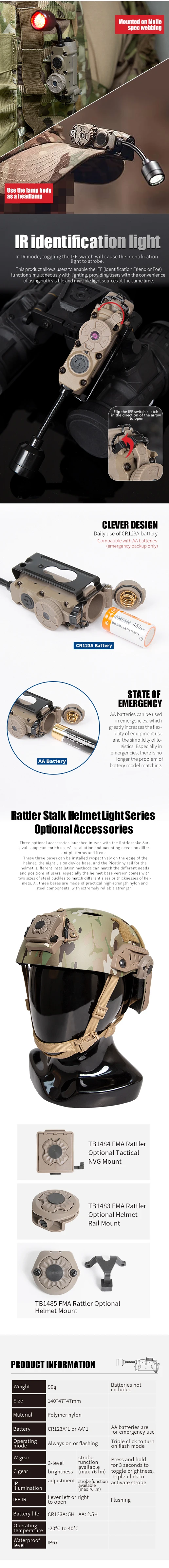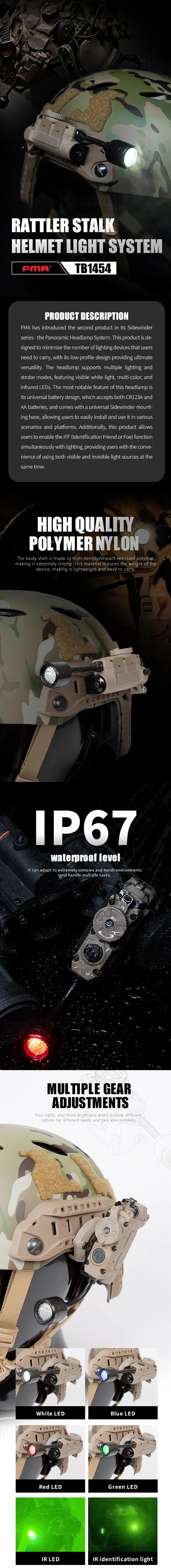 Faro de supervivencia táctico FMA Rattlesnake con visión nocturna IR y señal intermitente multicolor para uso en emergencias al aire libre TB1454