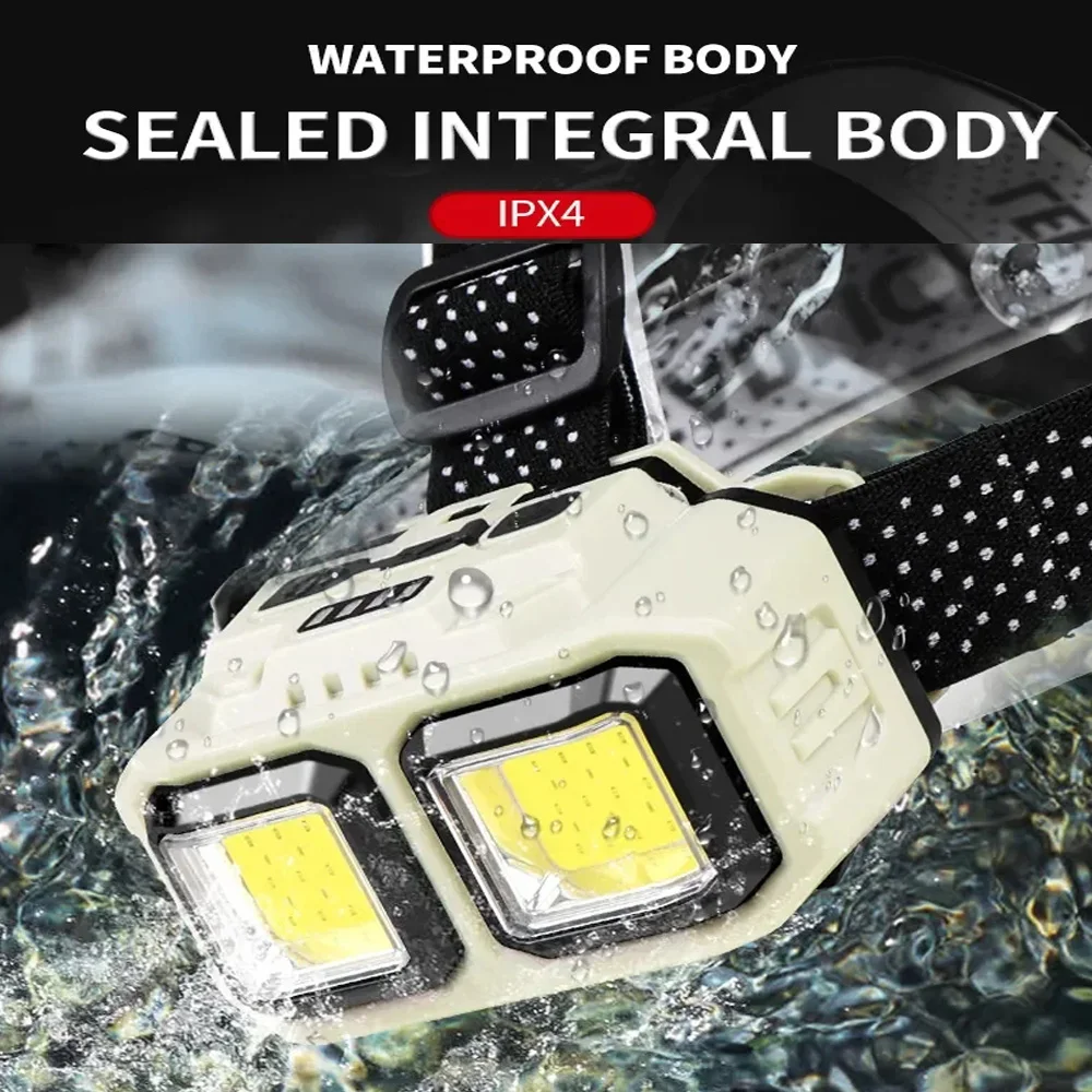 1 faro COB recargable por USB, luz blanca y modos de luz de señal roja