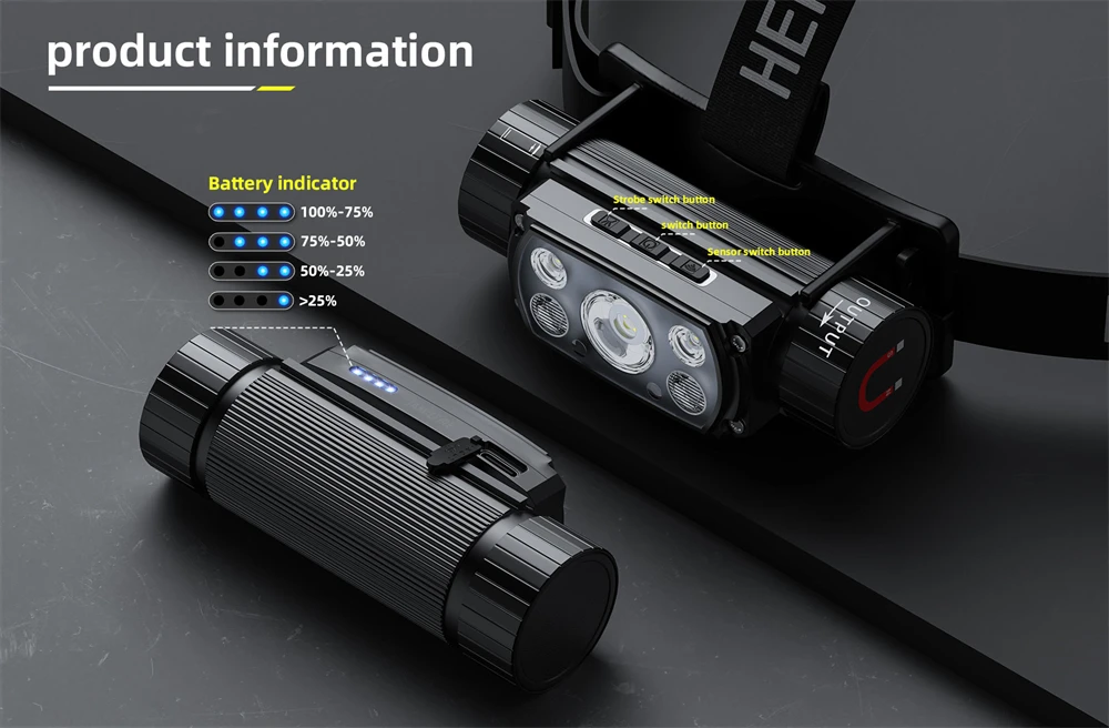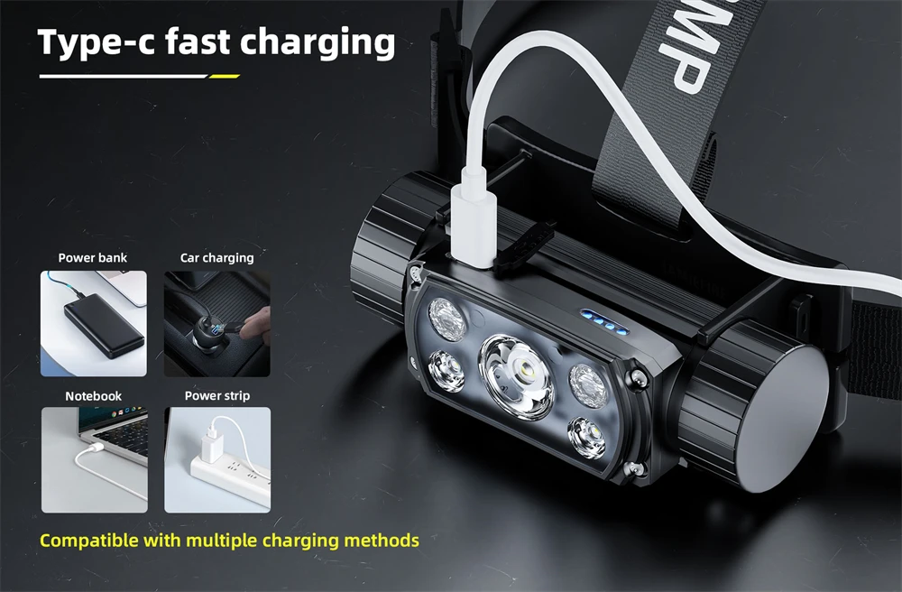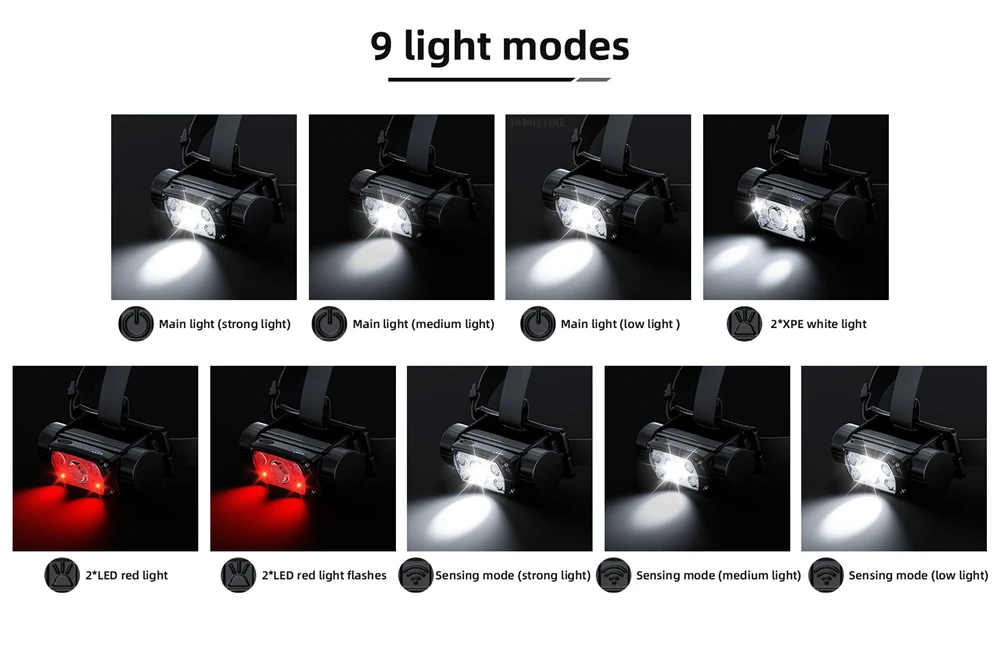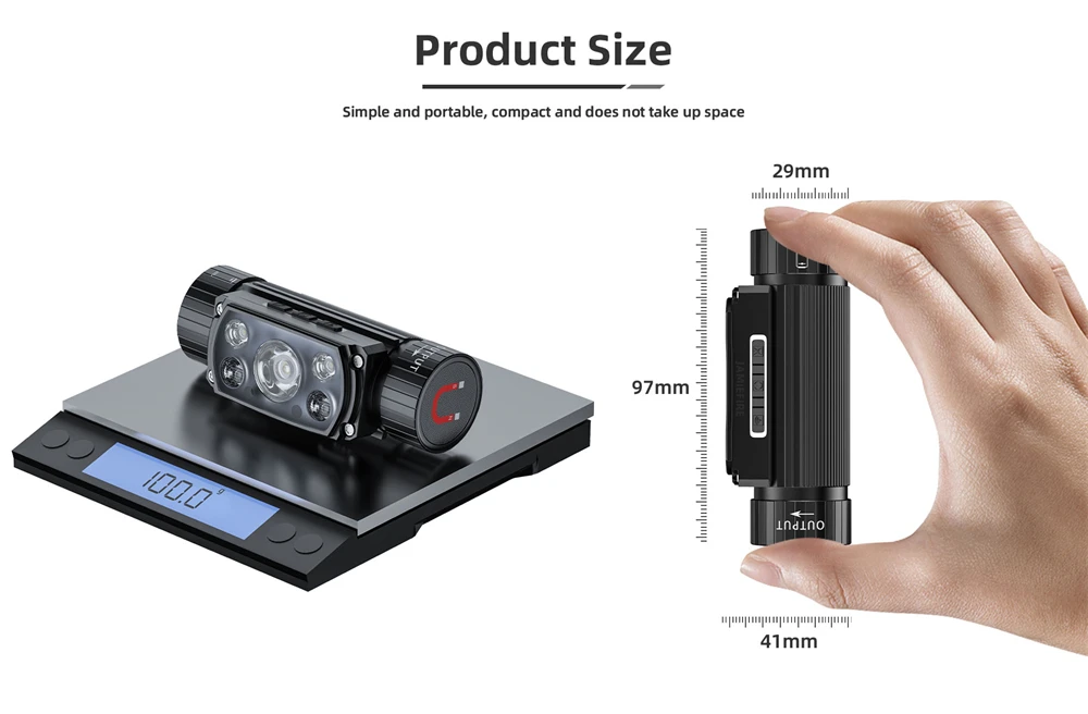 Potencia: 20WTamaño: 9,8*4,1*2,9 cmPeso neto: 143GMaterial: aleación de aluminio + ABSInterruptor: interruptor de presión e Interruptor de SensorFuente de alimentación: 1*18650 o 1*21700 batería recargable, reemplazableCarga USB: carga USB tipo C, salida de soporte 5V 1ADiseño de 3 botones de interruptor: Interruptor de luz principal (3 modos) + interruptor de luz auxiliar (3 modos) + Interruptor de Sensor (3 modos)Interruptor de luz principal (3 modos): XHP50 (fuerte/medio/Flash)Interruptor de luz auxiliar (3 modos): 2 * XPE fuerte-2 * LED luz roja-2 * LED luz roja de flashInterruptor de sensor (3 modos): XHP50 (fuerte/medio/Flash)Consejos:1. No irradie los ojos directamente para evitar daños en los ojos.2. Después de dejar de usar el faro, retire la batería y guárdela en un lugar fresco y seco. Evite colocarlo al sol o en un ambiente de alta temperatura. Los no profesionales tienen prohibido desmontar y modificar este producto3. Al cargar, no use faros delanteros, de lo contrario dañará la duración de la batería y explotará accidentalmente.