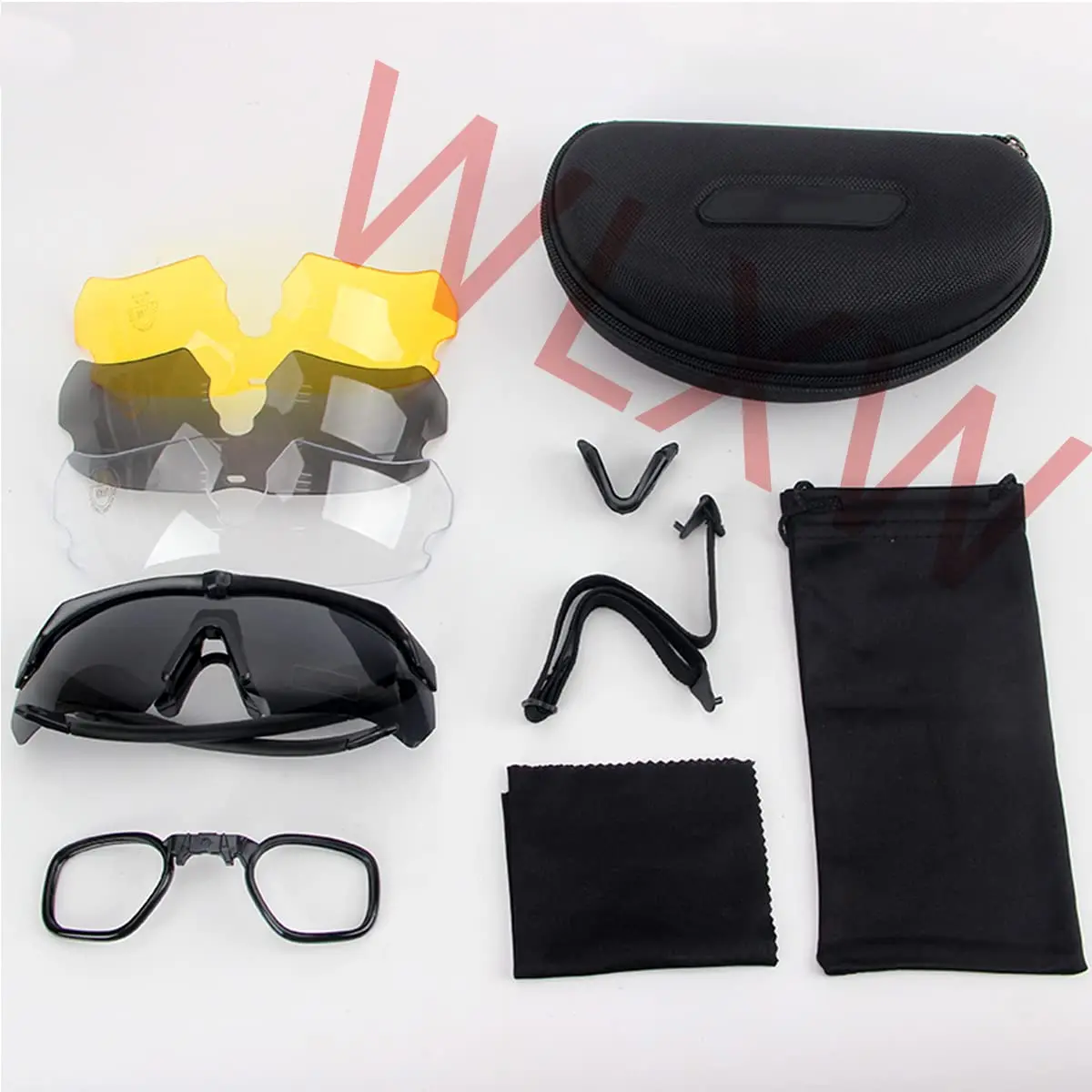 ▶Las gafas tácticas están hechas de nailon de alta calidad, el marco interior con anillo de goma para un uso cómodo. La lente está hecha de material de PC, la lente recubierta de policarbonato de 2mm de espesor viene con 3 lentes intercambiables (se puede utilizar en diferentes entornos). y soporta alto impacto, antiarañazos, antivaho, protección UV.