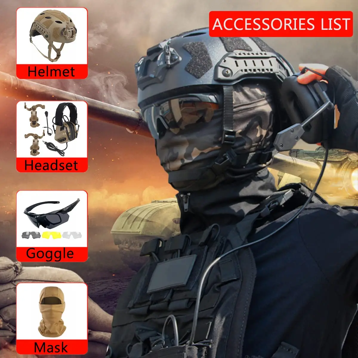 ▶Combinación genial y perfecta: la máscara, los auriculares, el casco y las gafas cooperan para formar un todo unificado, proporcionando al usuario una gama completa de protección para la cabeza, y protege tu cabeza y cara de lesiones en juegos de paintball. Auriculares, cascos, máscara y gafas se pueden usar solos.