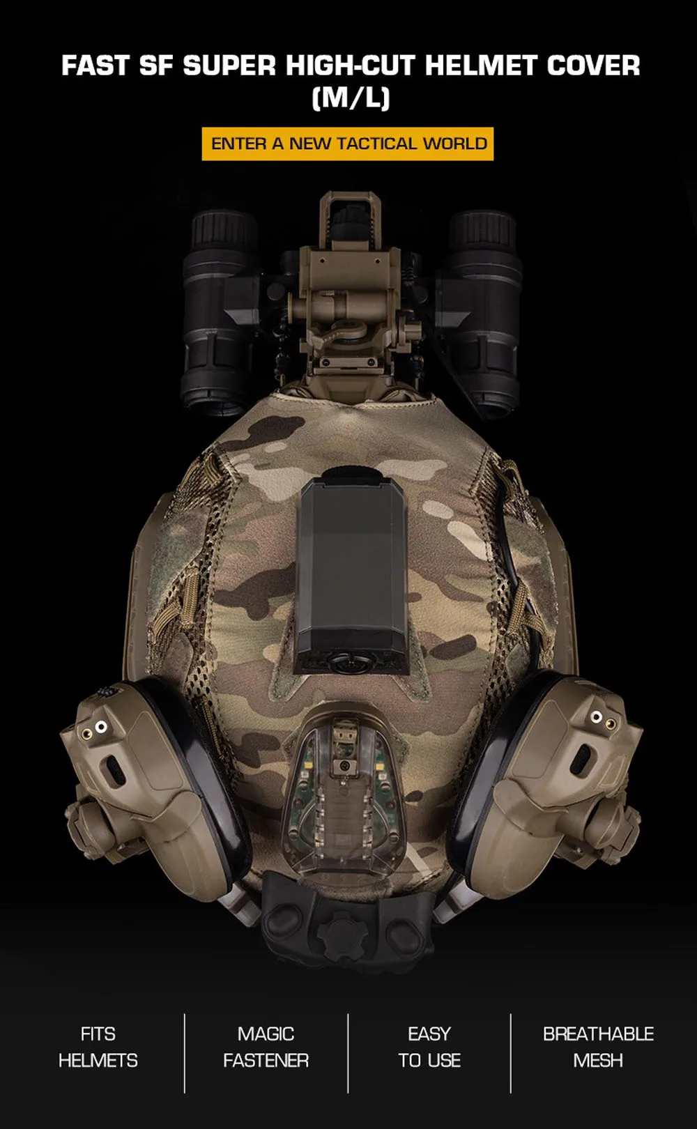 FAST SF cubierta de casco de corte súper alto soporte de parche mágico transpirable caza al aire libre tiro Airsoft cubierta de casco equipo de protección