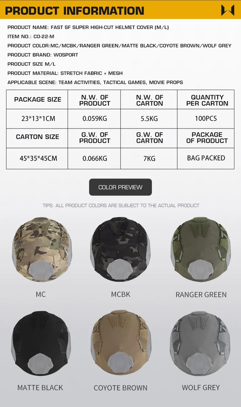 1. This product is compatible with ultra-high cutting fast helmets and universal helmet covers for M-sized helmets.