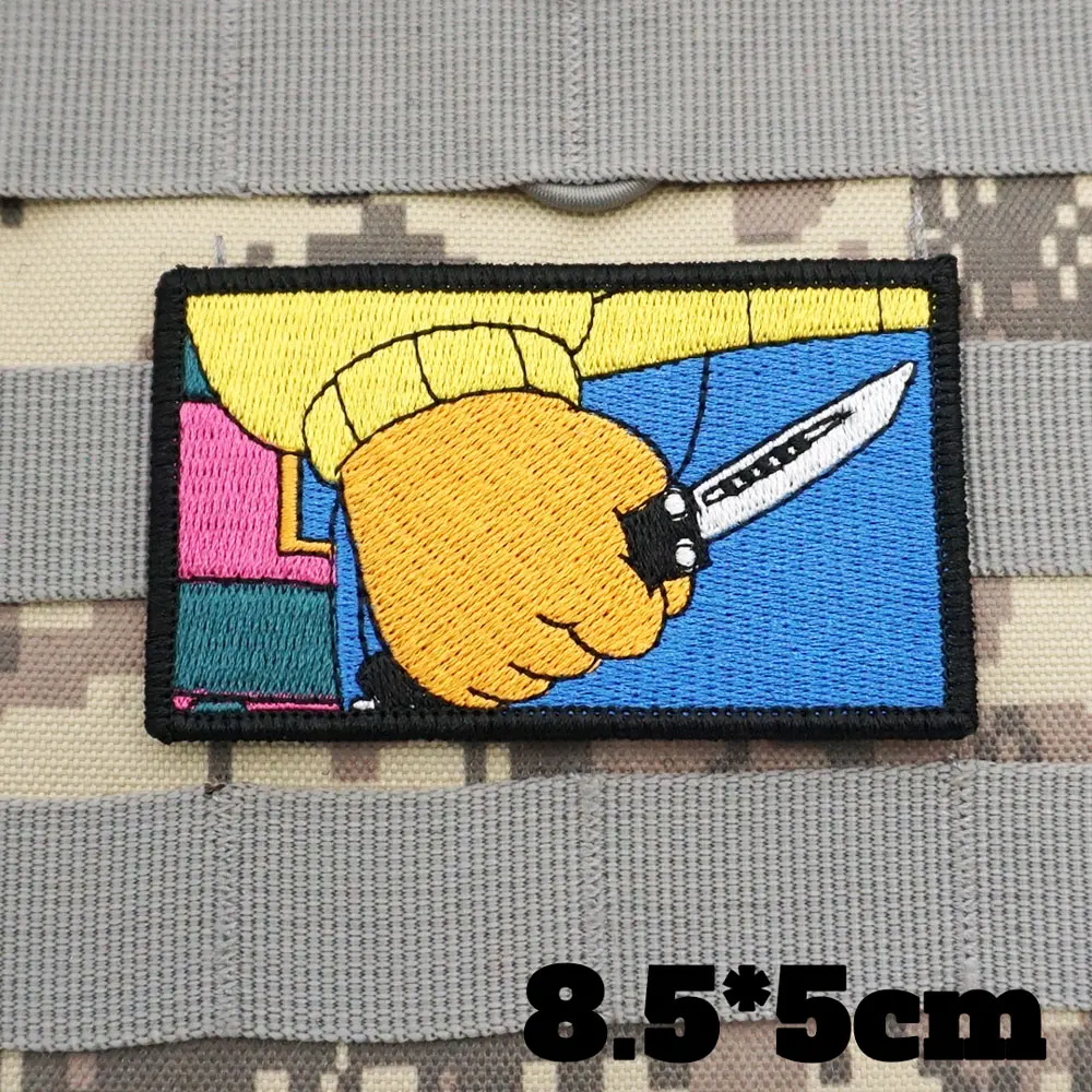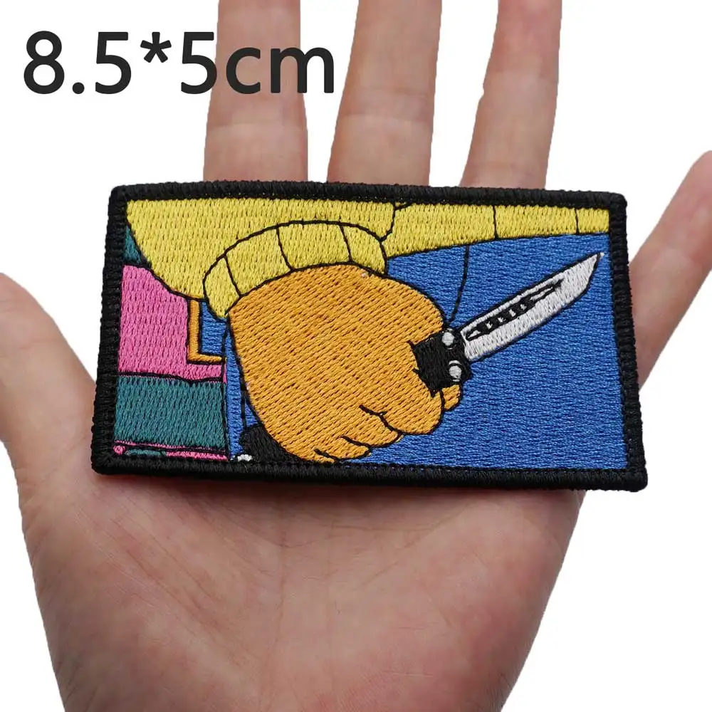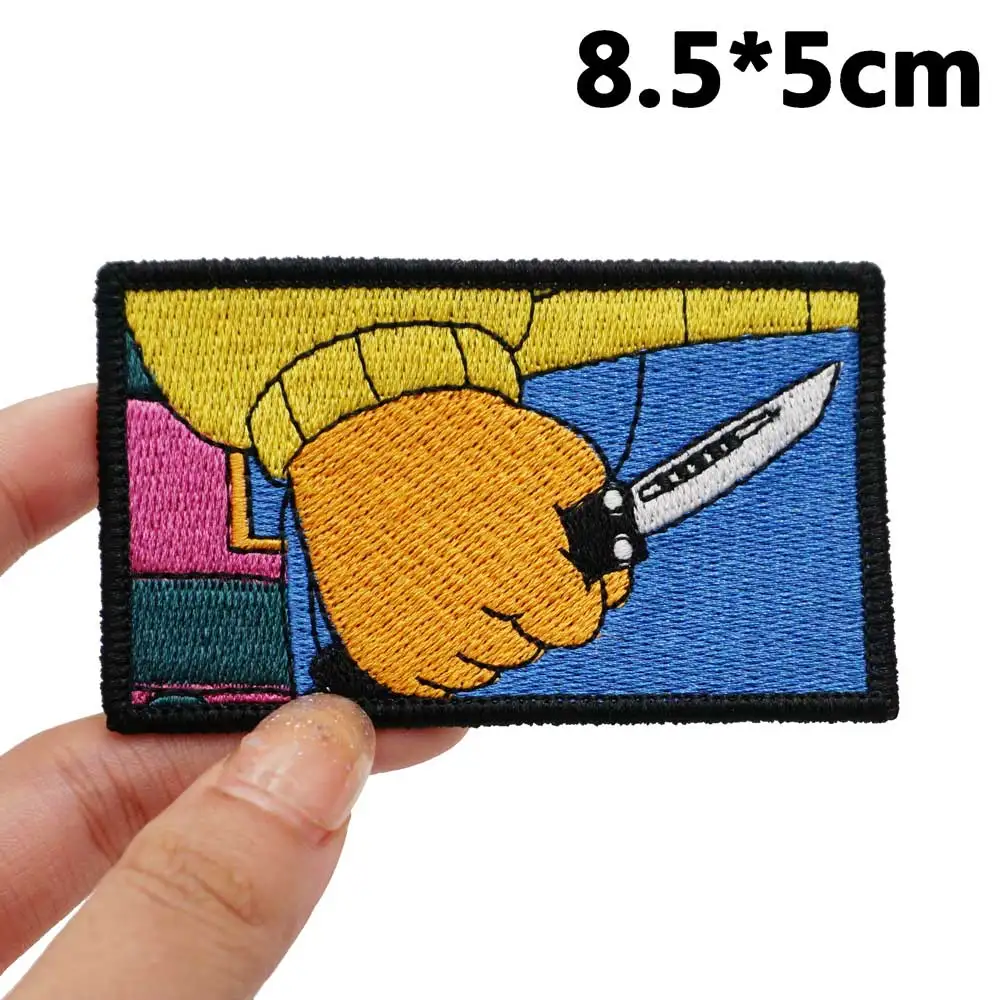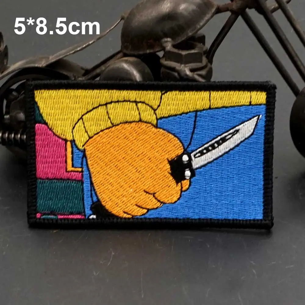 FatTiger-parches bordados para ropa de Rock, apliques de etiqueta de costura, banda de motorista punk, insignias con gancho trasero, sostiene un cuchillo en su mano