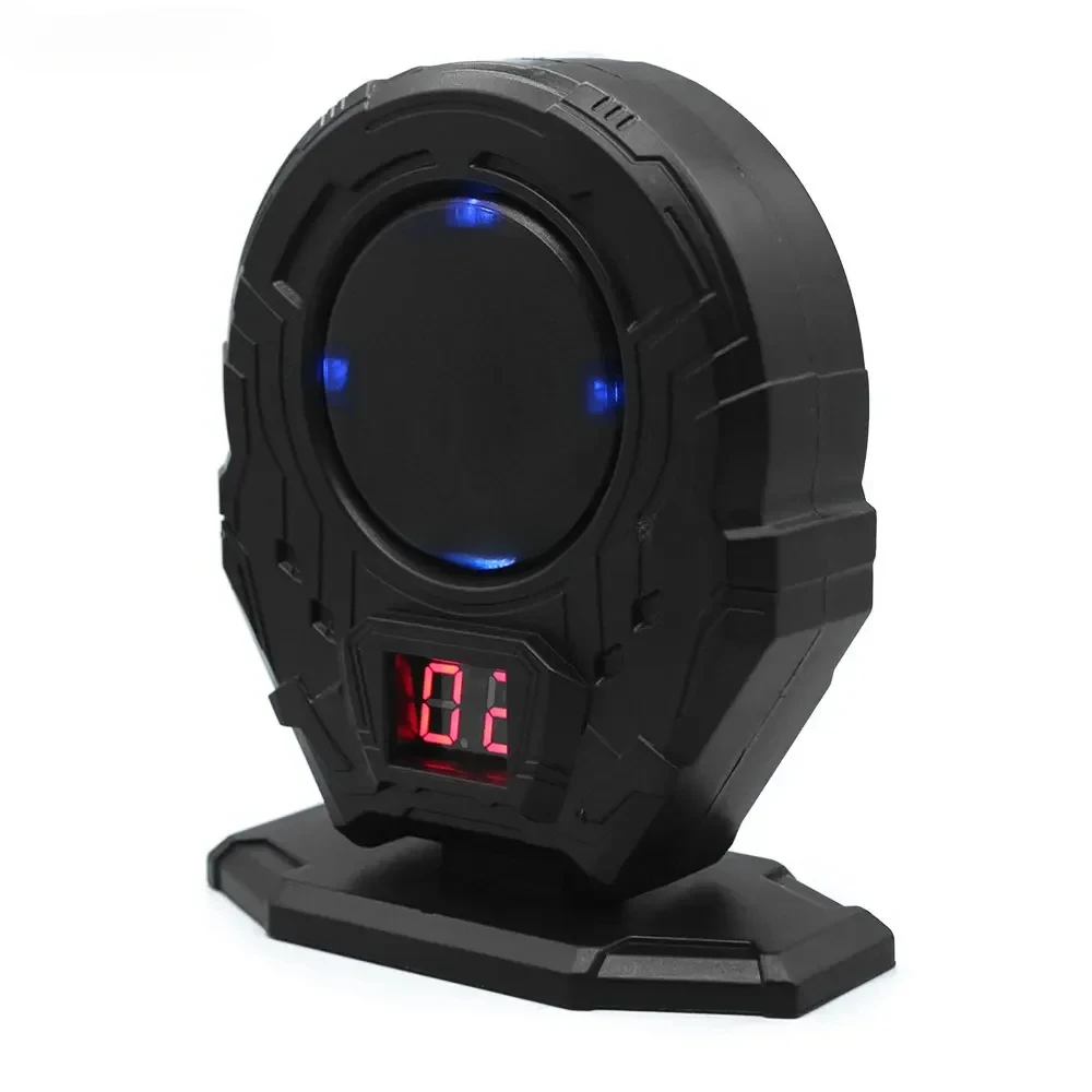 Este es un objetivo láser.Cuando el objetivo detecta que ha sido disparado con un láser, marcará puntos automáticamente y dará retroalimentación luminosa (la retroalimentación de luz es solo uno de los tres tipos de luz, roja o azul o roja y azul alternativamente, y se enviará al azar) y hacer un sonido.Adecuado para dardos láser, pistolas de juguete láser, punteros láser, juguetes láser, etc.(Este producto solo puede detectar láseres y no hay láser en sí)