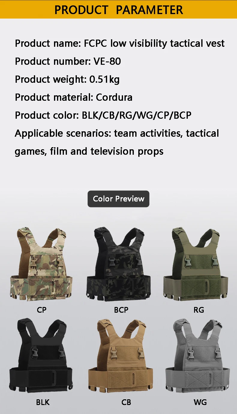 FCPC SLICKSTER Heat Dissipation Lining Tactical Vest, Lightweight, Low Visibility, High Compatibility, Free Expansion