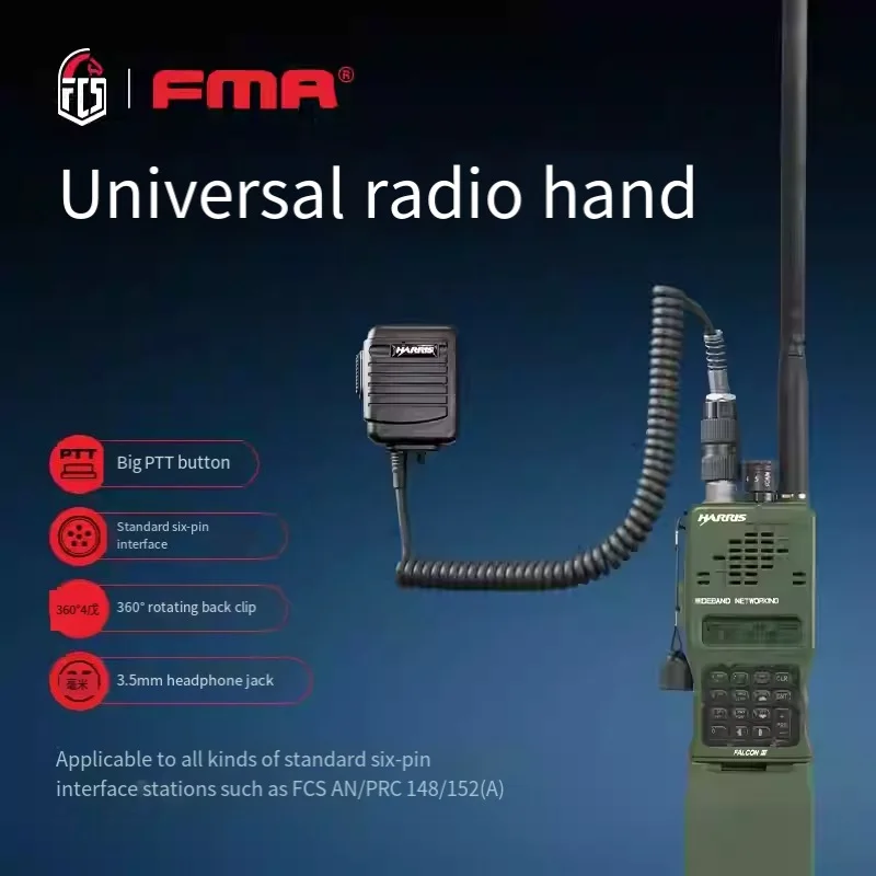FCS-TACTICAL Micrófono de mano de radio universal - Conector de 6 pines para radios AN/PRC 148/152