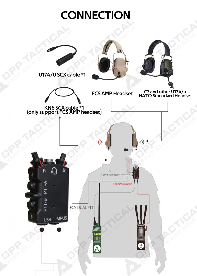 FCS dual PTT is a dual-channel multifunctional Tactical Radio PTT