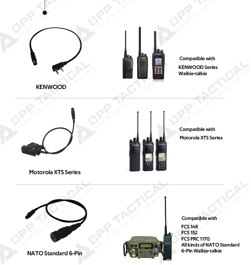 It is easy to use. The upper socket is connected to the tactical headphones defined by the NATO standard, and the lower socket is connected to various radio equipment, which constitutes a complete set of radio communication equipment.