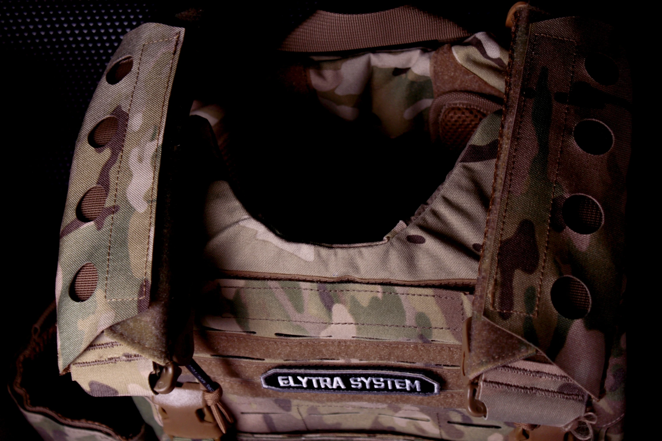 Orificios cortados con láser para acomodar tubos de hidratación, cables de comunicación y antenas.
