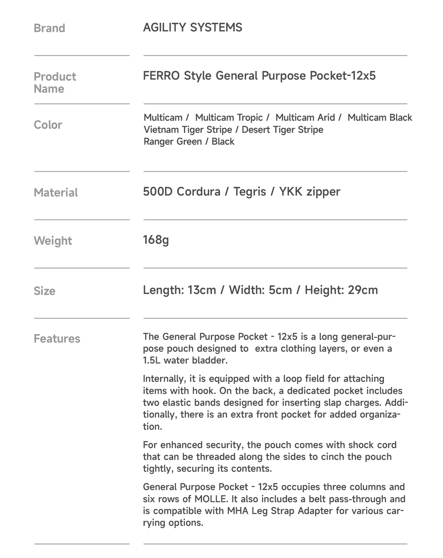 FERRO estilo GP Pouch 12x5 bolsa de almacenamiento vertical de varios bolsos