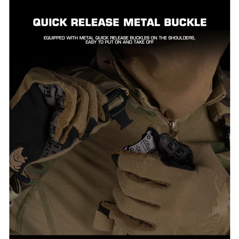 ※ Uno de los hombros cuenta con una hebilla de liberación rápida de metal que se puede instalar en el lado izquierdo o derecho, simplificando la colocación y extracción del chaleco.
