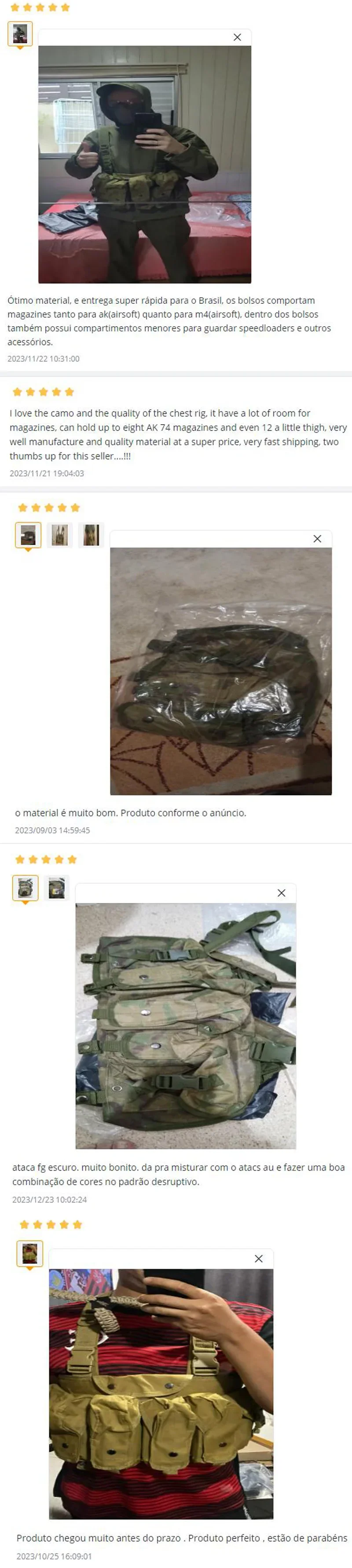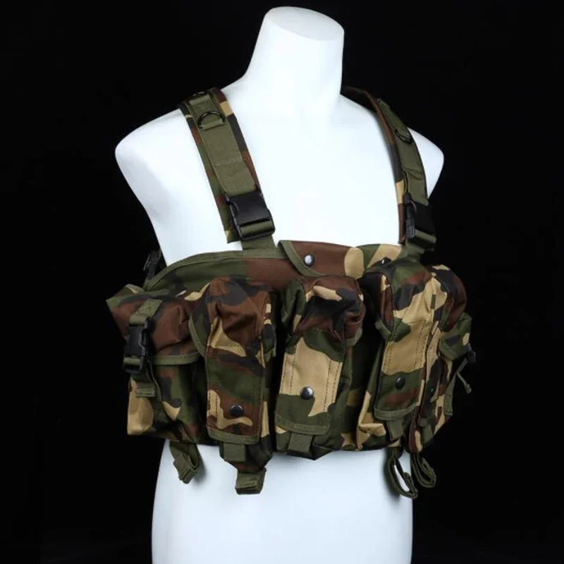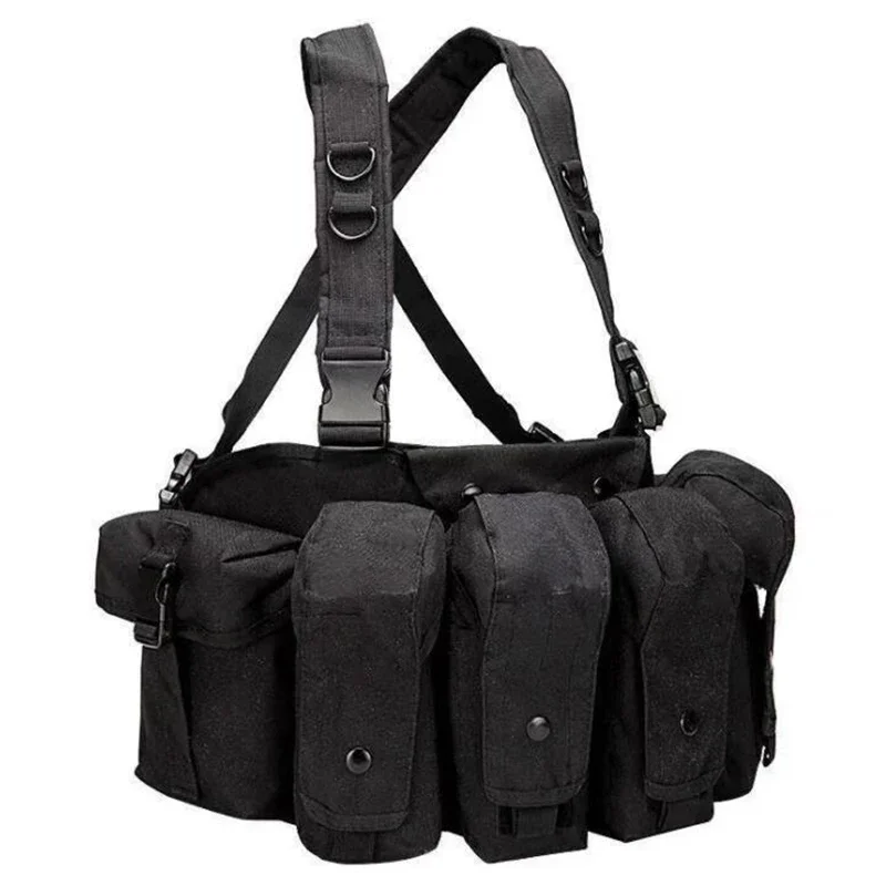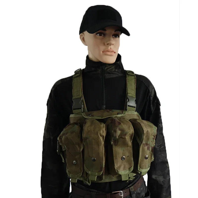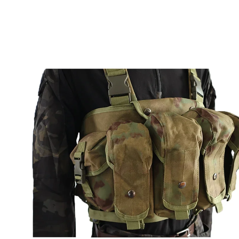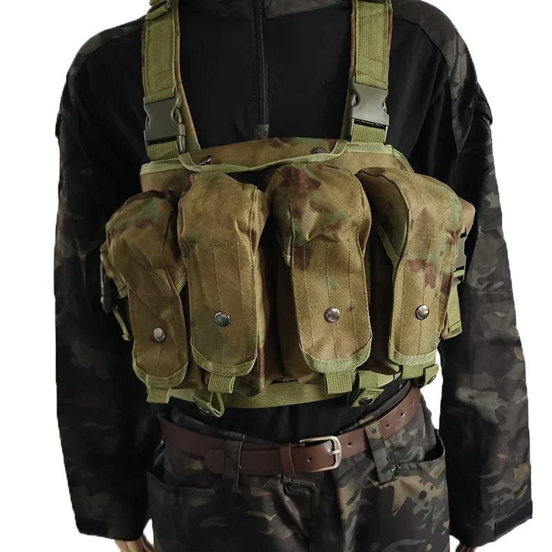 -4 bolsas para cargadores de rifle, cada bolsa puede contener hasta 2 cargadores tipo 7,62 (o 3 cargadores tipo 5,56) en forma de plátano