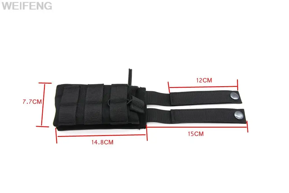 -Compatible con el sistema MOLLE en la parte posterior-Hecho de tela impermeable de material de nylon-Fácil de abrir y cerrar-Pequeño en tamaño, ligero en peso, fácil de llevar-Este paquete está diseñado para la conexión a la mochila del chaleco y otras especificaciones: - Material: tela de nylon-Peso completo: 100g - Color: negro, verde, caqui, ACU,FG-Tipo de deporte: caza al aire libre El paquete incluye: 1 * bolsa de revista