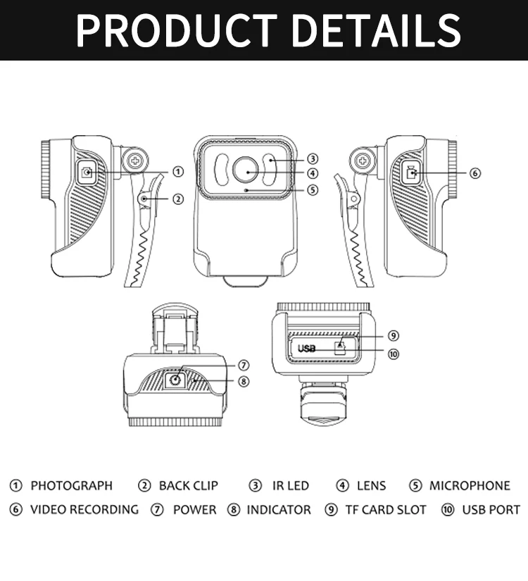 Producto: Grabadora de cámara con clip trasero multifuncional.