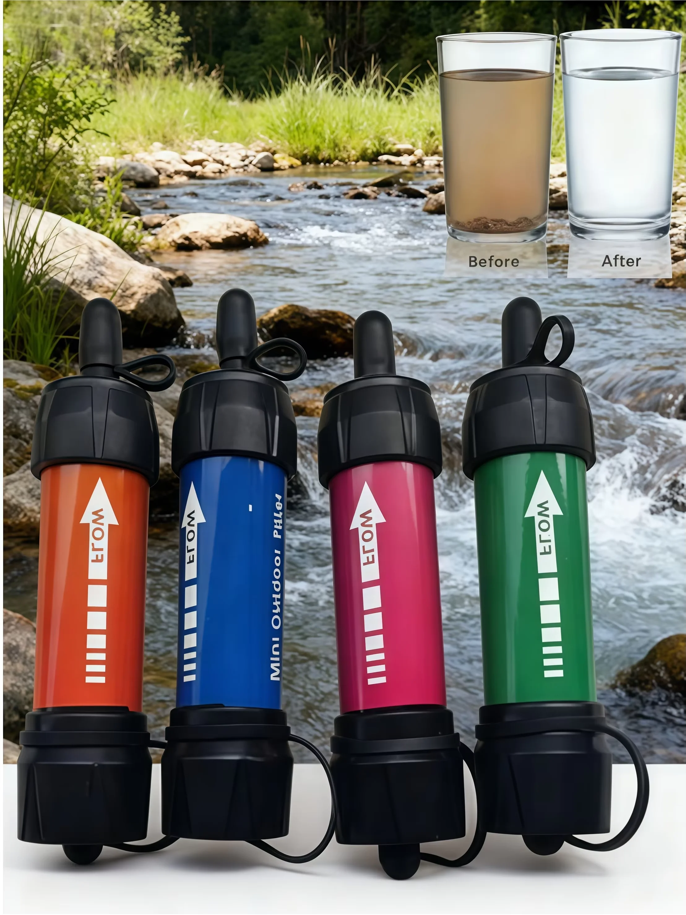 El filtro de agua portátil para exteriores está diseñado para facilitar su transporte, lo que lo hace perfecto para caminatas, campamentos y situaciones de emergencia.