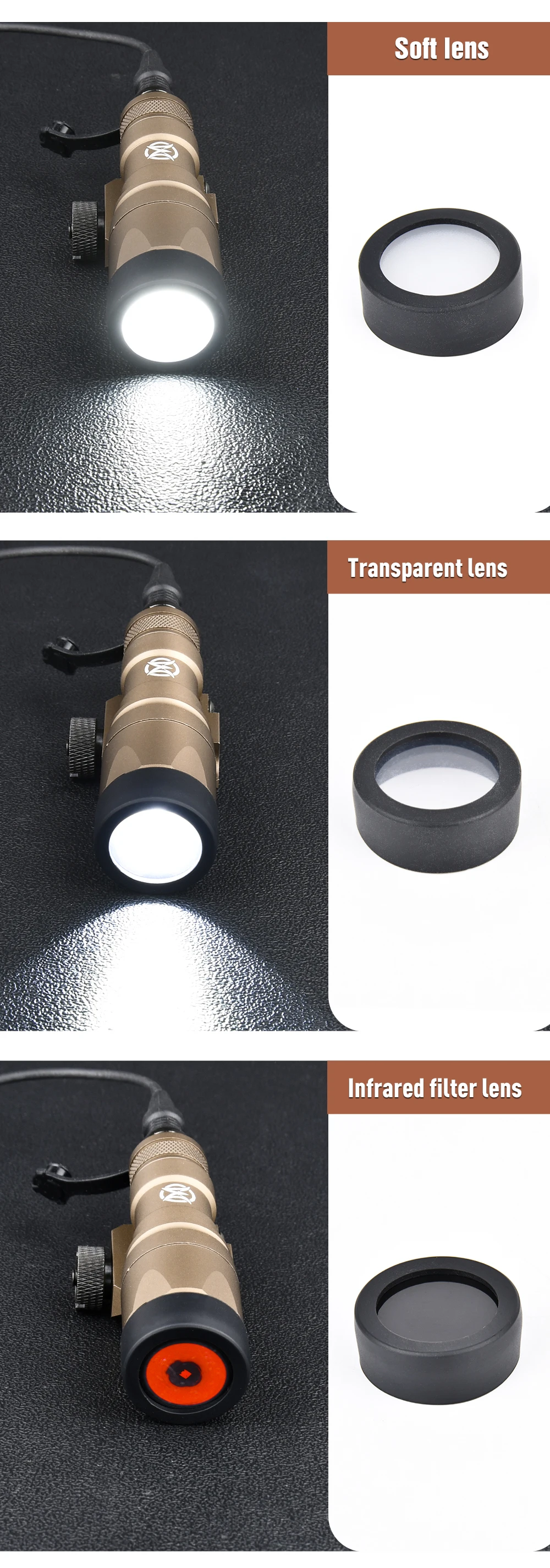 Filtro IR Airsoft Surefir M300 M600 linterna pantalla de luz suave cubierta protectora compatible con lámpara Scout Wadsn M300A/M300B/M600C/M600B