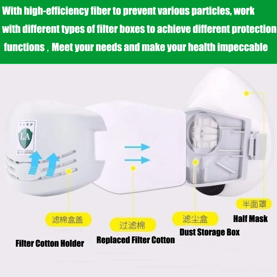 Nota:1. La vida útil normal del filtro de algodón es de 3 a 7 días hábiles, cuando se produce obstrucción respiratoria.Si la fuerza respiratoria aumenta, deje el entorno de trabajo a tiempo de ir al lugar seguro paraReemplácelo con filtro de algodón nuevo;2. Hay 2 tipos de filtros de algodón en estos anuncios de compras, elija el correcto que desee.3. El paquete no está incluido con ninguna máscara o respirador.