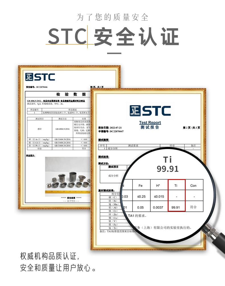 Titanio de alta calidad, peso ligero, no se oxida fácilmente, protección de la salud y del medio ambiente