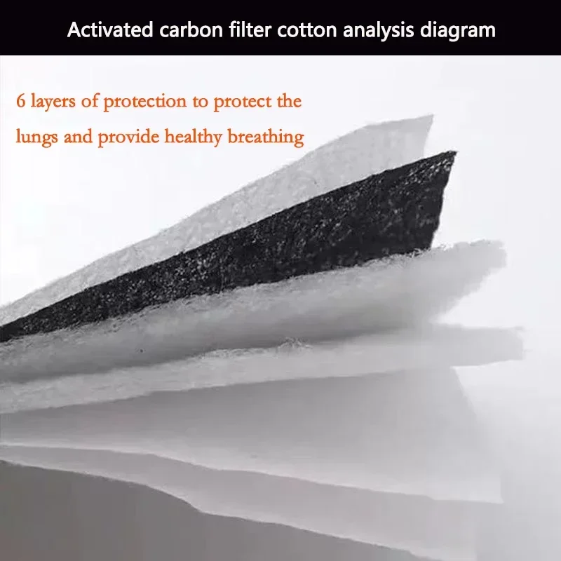 * El algodón con filtro de carbón activado tiene 6 capas, que pueden filtrar eficazmente partículas grandes en el aire, efecto a prueba de polvo ≥ 95%. Es ampliamente utilizado en minería, pulido, carpintería, construcción y otras escenas. Puede ayudarle a limpiar un ambiente de respiración saludable.