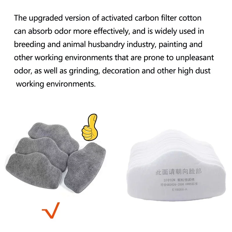 * El algodón con filtro de carbón activado no se puede usar solo, necesita trabajar con la máscara. Puede ser adecuado para máscara antipolvo 3200/8016.