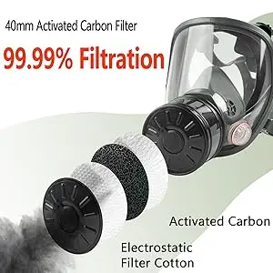 El filtro respirador de 40 mm está compuesto de carbón activado y filtro de algodón electrostático, con mayor capacidad de adsorción y filtración, eliminando eficazmente el polvo, el vapor orgánico, las partículas, etc.