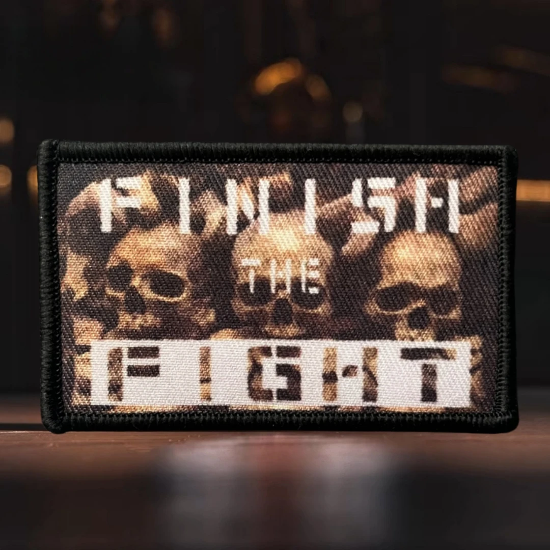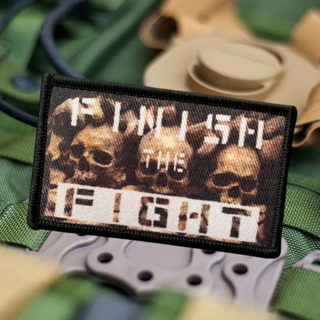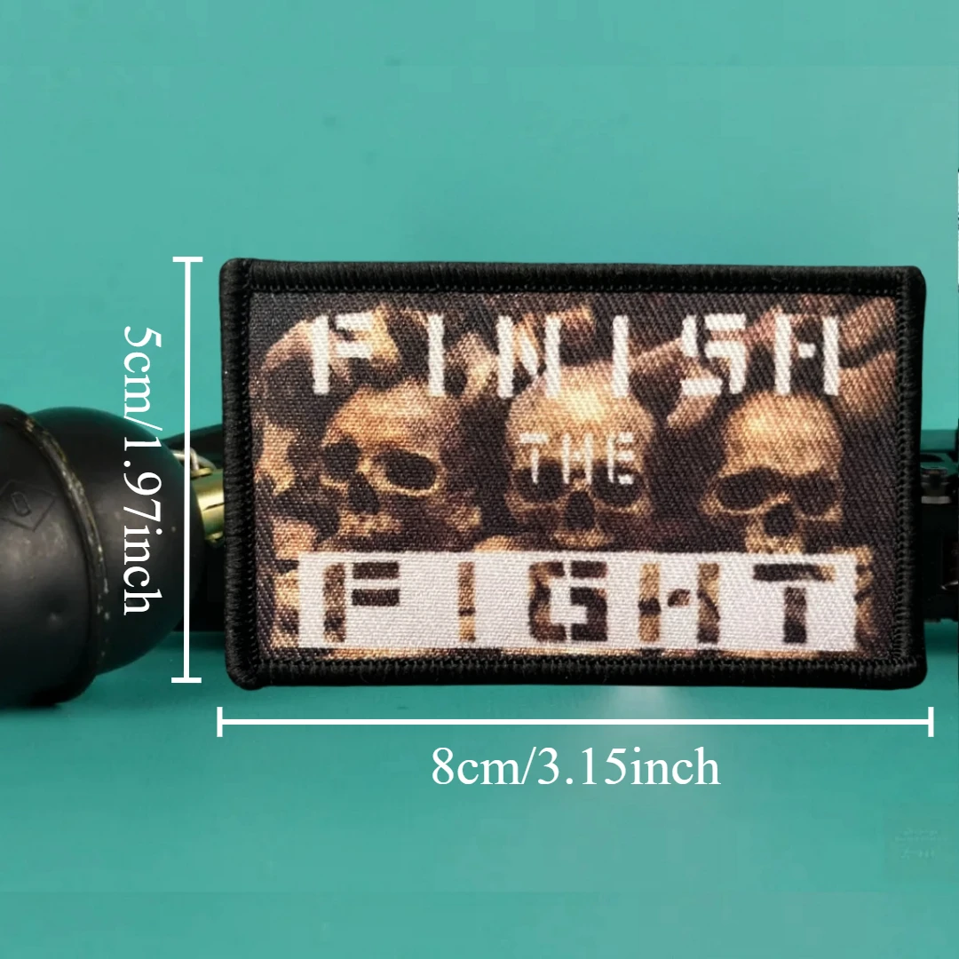 Finish The Fight Skull Morale insignia parche táctico impresión gancho y bucle brazalete militar mochila pegatina apliques