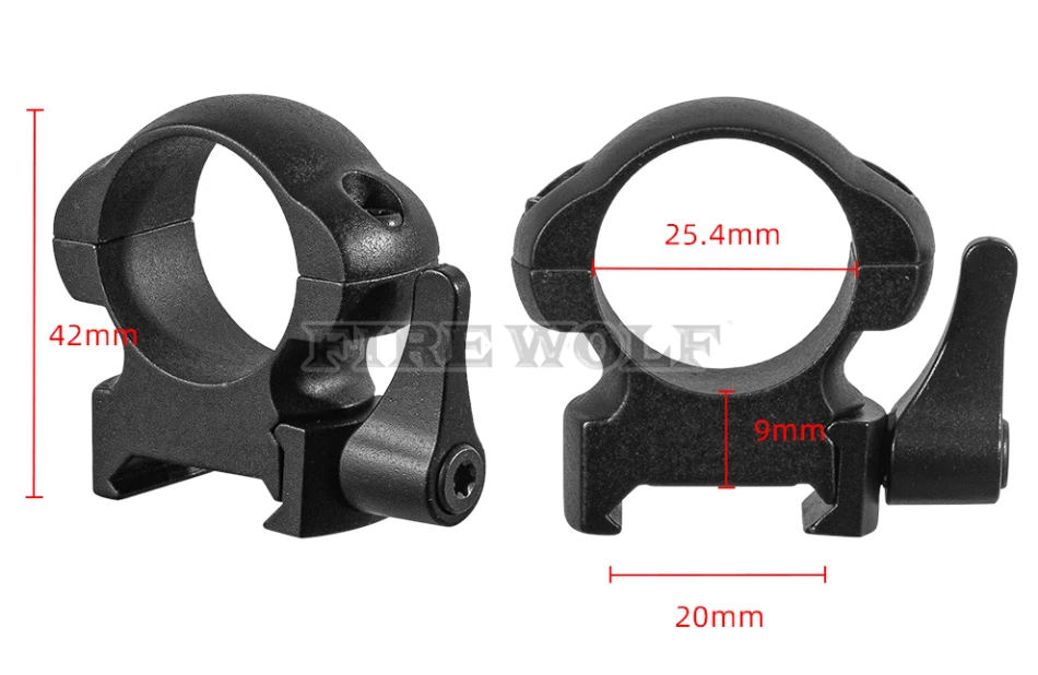 FIRE WOLF 2 unids/set alcance de acero anillos de 25,4mm liberación rápida perfil bajo medio alto para riel de 20mm montaje de anillo de escopios de caza