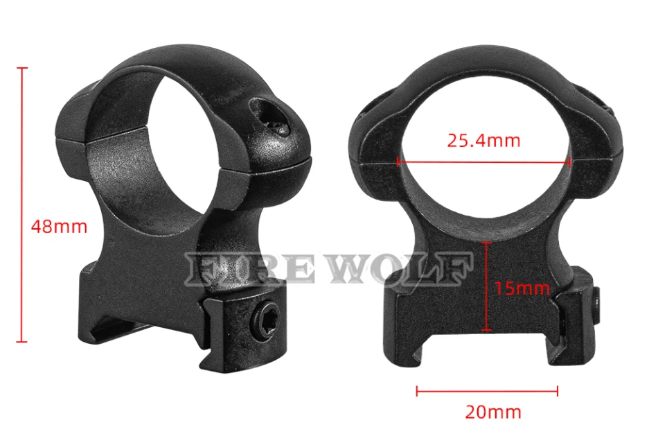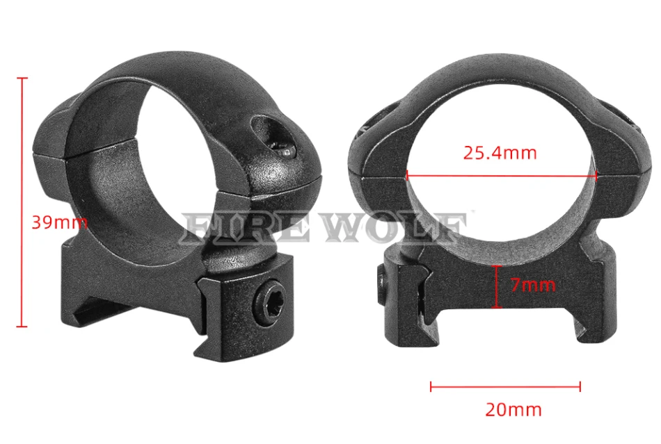 FIRE WOLF 2 unids/set alcance de acero anillos de 25,4mm perfil bajo medio alto para riel de 20mm escopos de caza montaje de anillo