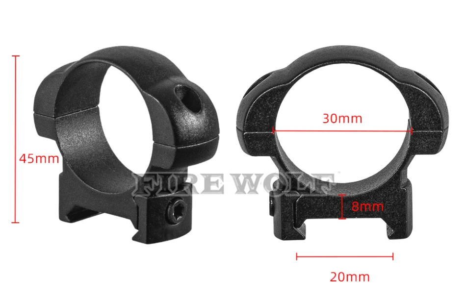 FIRE WOLF 2 unids/set alcance de acero anillos de 30mm perfil bajo medio alto para riel de 20mm miras de caza montaje de anillo