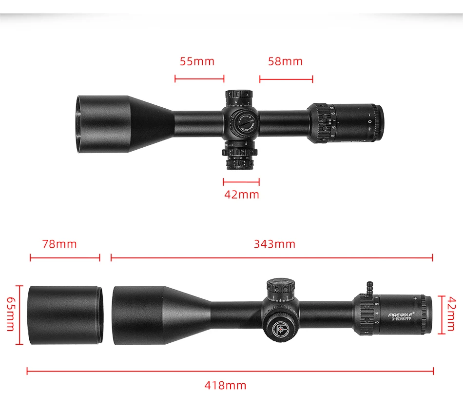 FIRE WOLF 3-15X56 FFP primer plano Focal mira telescópica táctica 2026 iluminación para tiro de largo alcance ajuste de caza.338