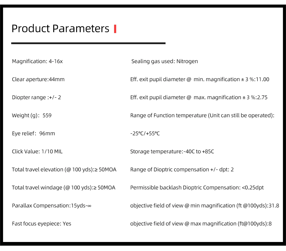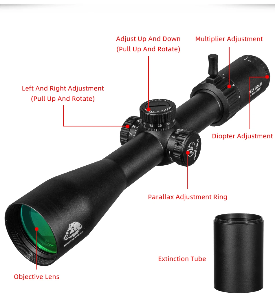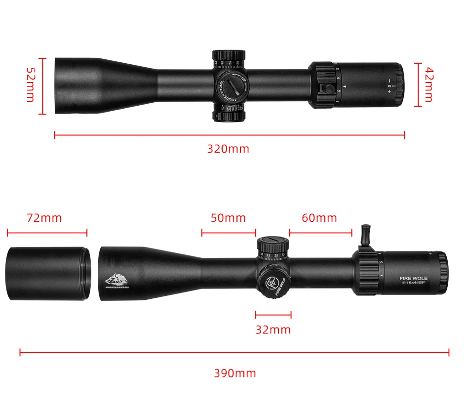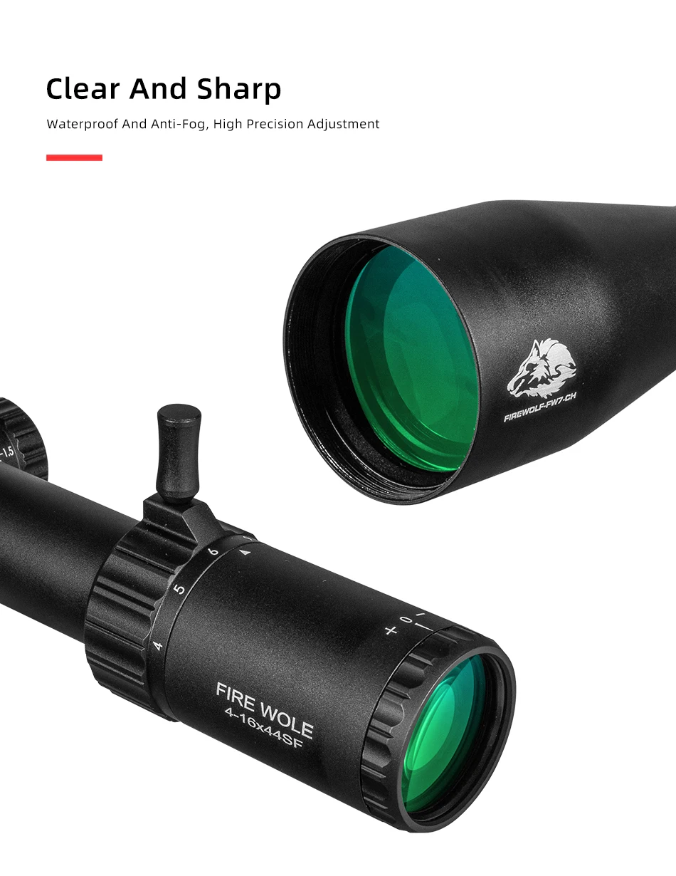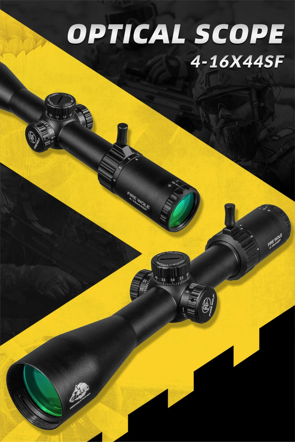 FIRE WOLF 4-16x44 SF alcance para Rifle de caza 30mm 1/10Mil ajuste de torreta con sistema de bloqueo de alta definición con ocular gran angular