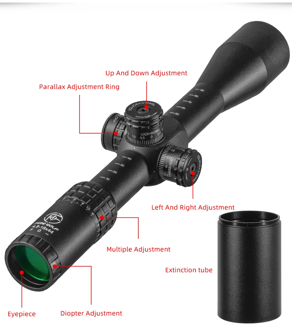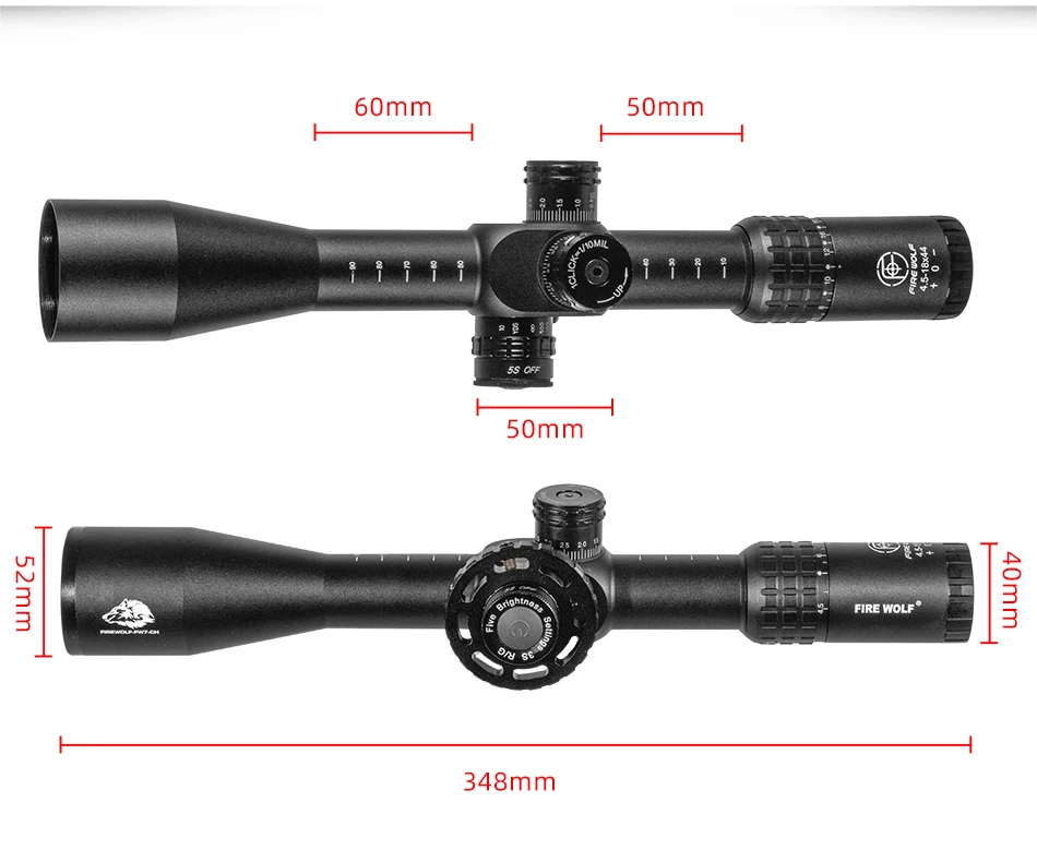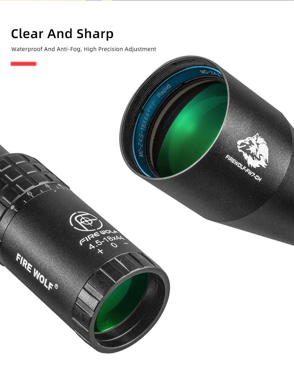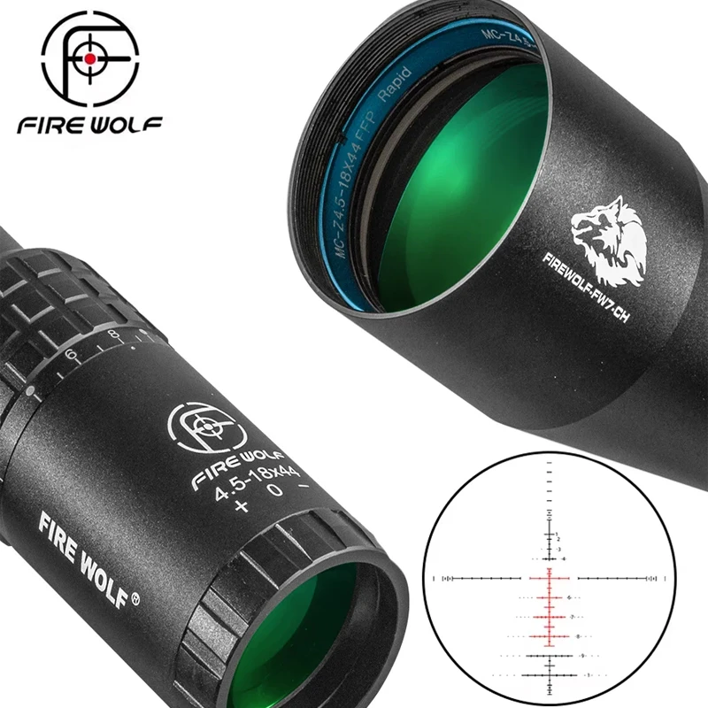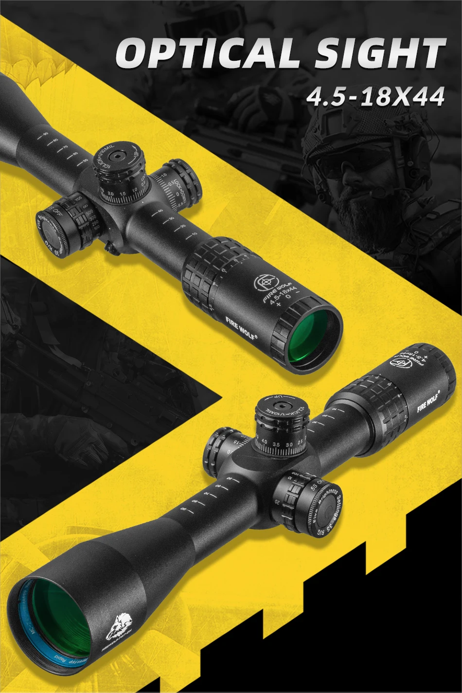 FIRE WOLF 4,5-18X44 FFP táctico óptico Rifle alcance ajustable rojo verde caza Riflescope retícula de vidrio volante grande torretas