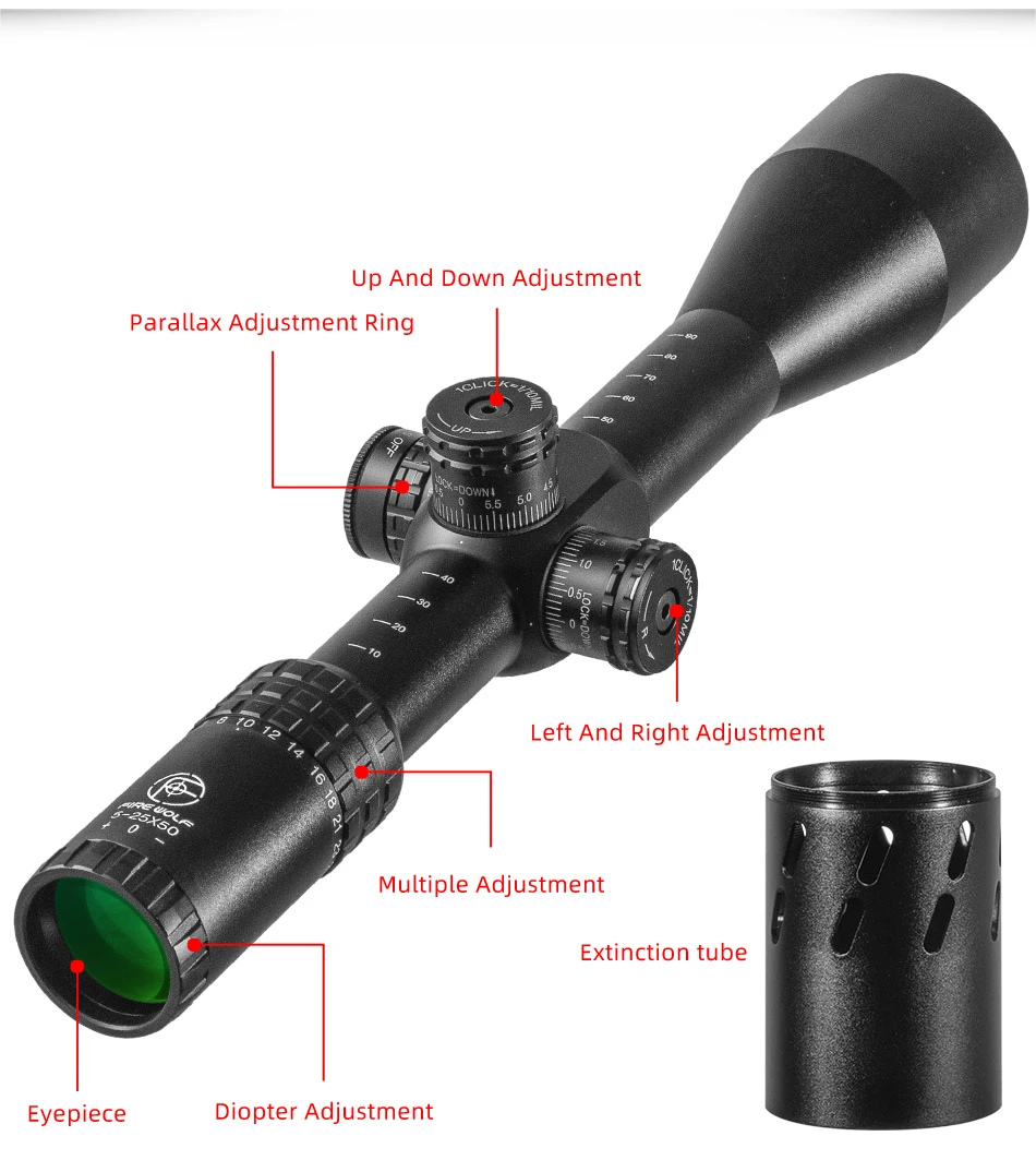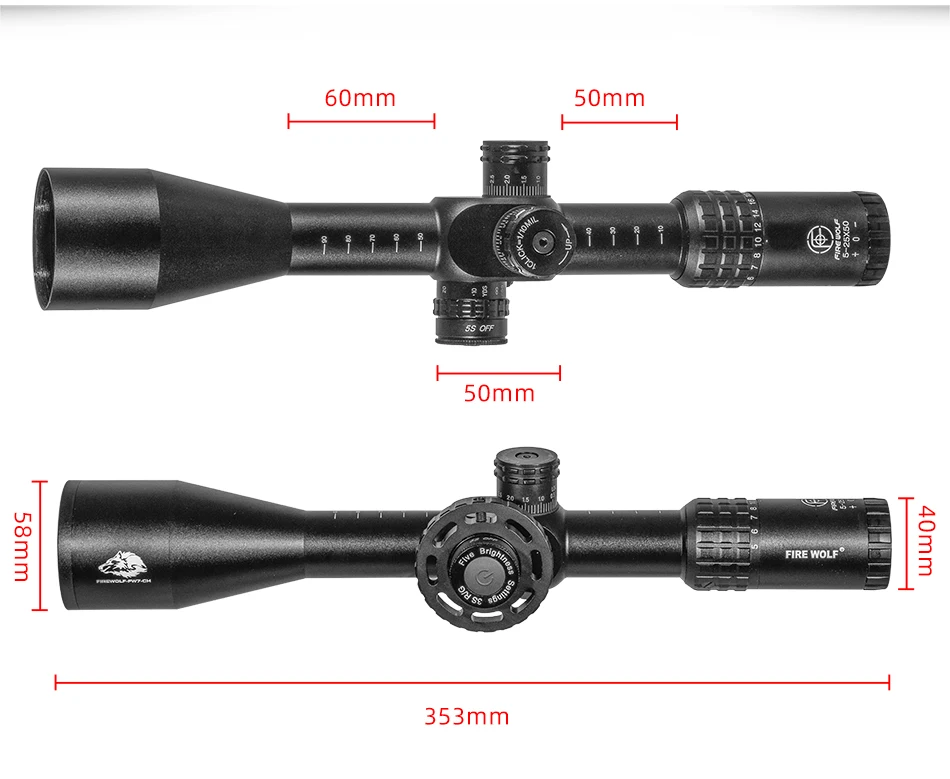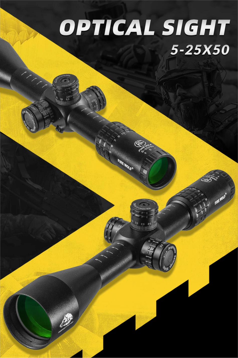 Fire wolf 5-25X50 FFP táctico óptico Rifle alcance rojo verde caza Riflescope vidrio retícula mira de francotirador