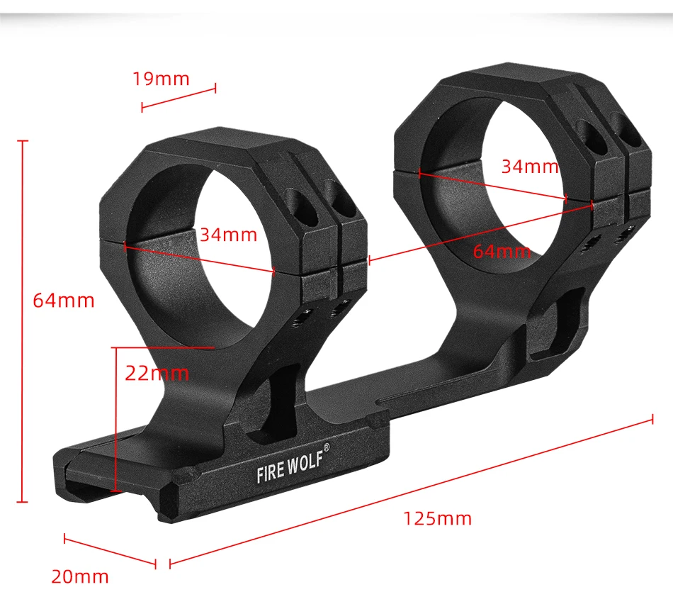 FIRE WOLF 7075 Anillo de montaje de alcance de aleación de aluminio 34 mm de alto caza Airsoft doble abrazadera táctica de metal se adapta a riel de cola de milano de 20 mm