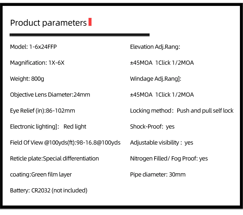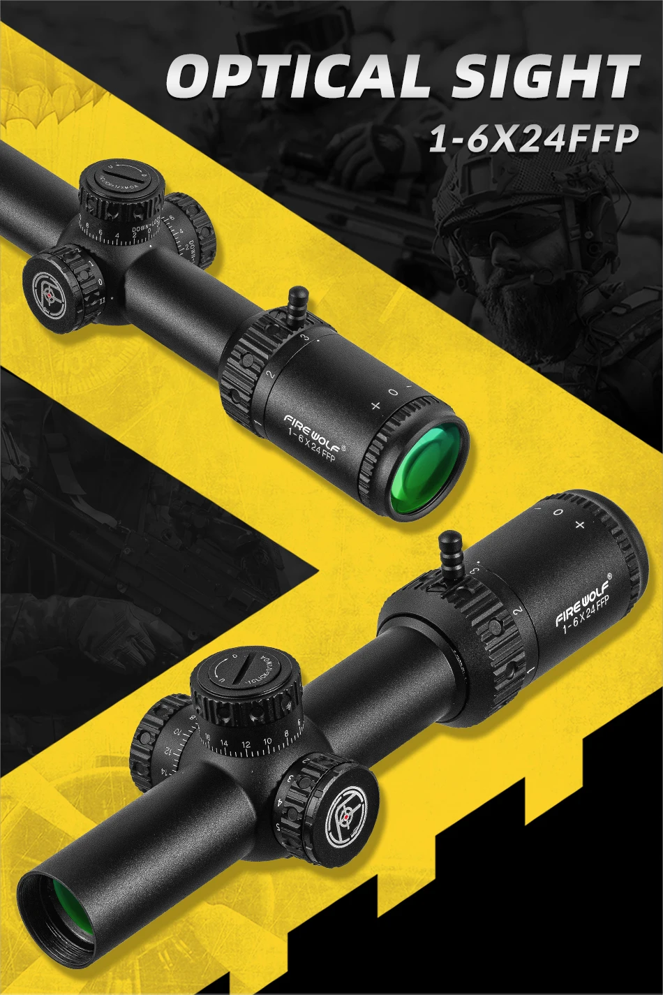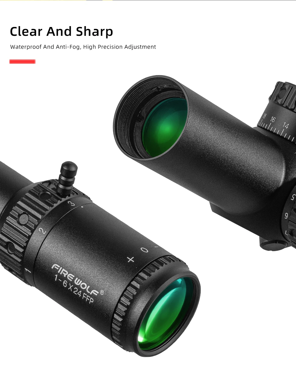 FIRE WOLF FFP 1-6X24 IR alcance compacto alcance de caza mira para Rifle táctico retícula grabada en vidrio amplio campo de visión miras ópticas