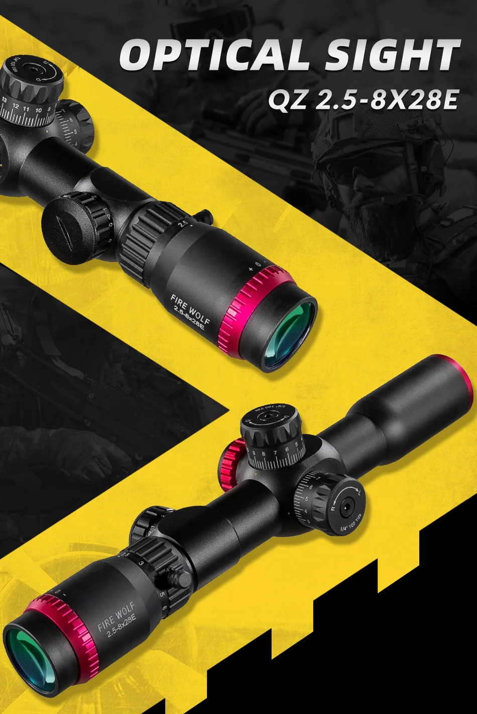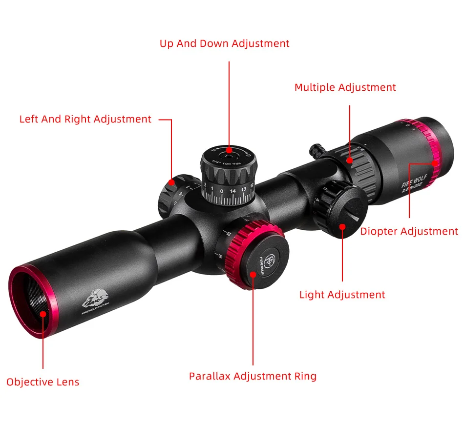 Fire Wolf FFP 2,5-8x28 alcance doble alcance cruzado caza verde rojo iluminado Riflescope QZ Rifle Scope mira óptica táctica