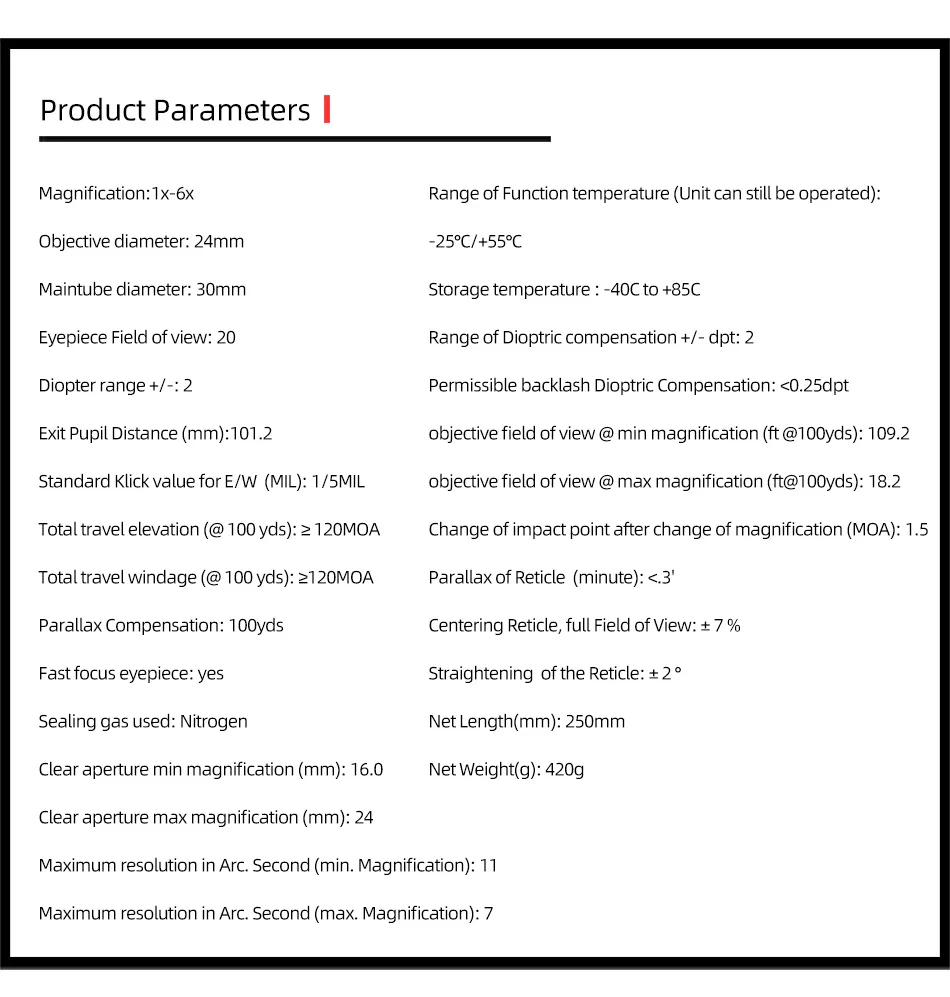 FIRE WOLF HD 1-6X24 IR mira de caza compacta mira para Rifle táctico retícula grabada en vidrio amplio campo de visión miras ópticas 2026