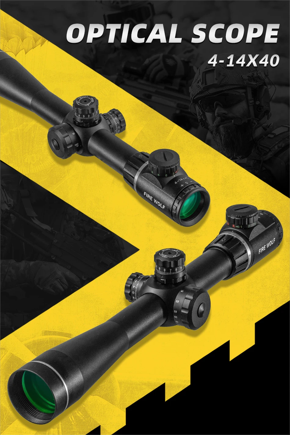 Fire Wolf HD 4-14X40 Cruz roja y verde línea redonda táctica alcance mira telescópica óptica Rifle impermeable 500 metros vista 2025