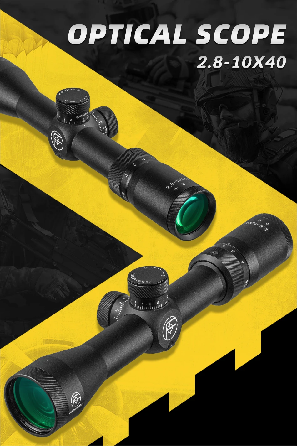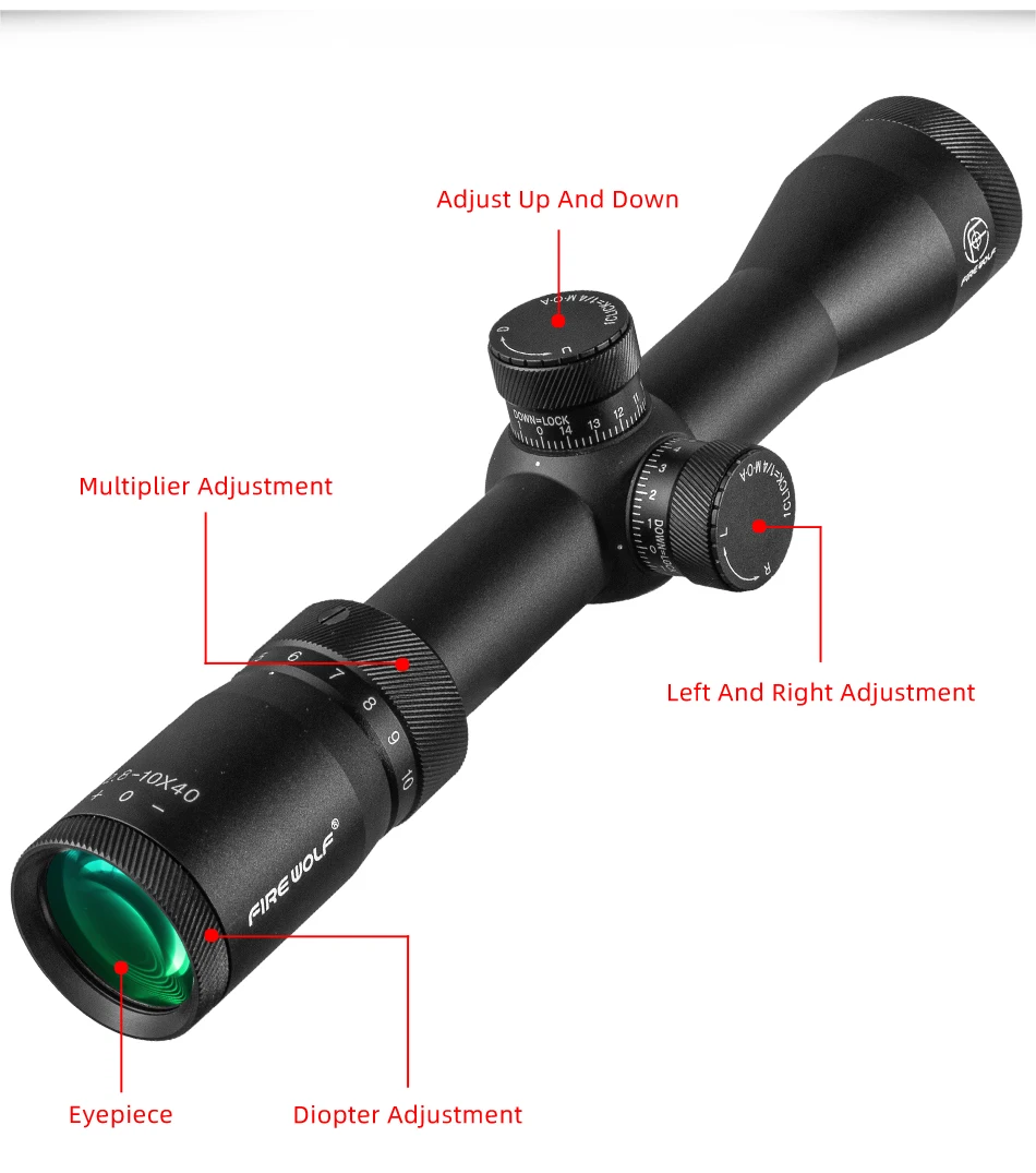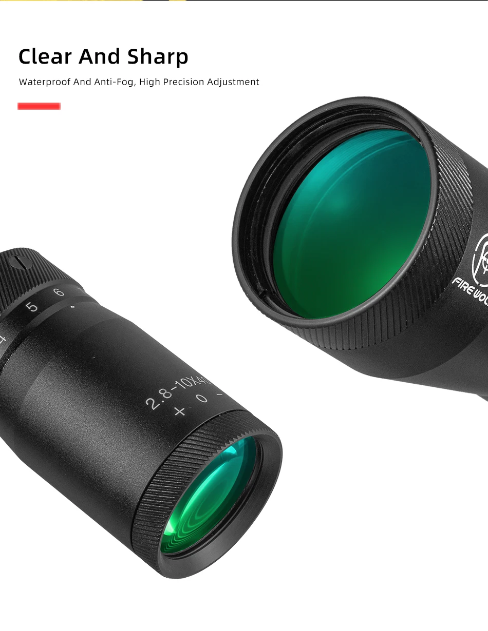 Fire Wolf-mira telescópica para caza, retícula verde, mira óptica, Rifle de caza, pistolas de aire Airsoft, 2,8-10X40
