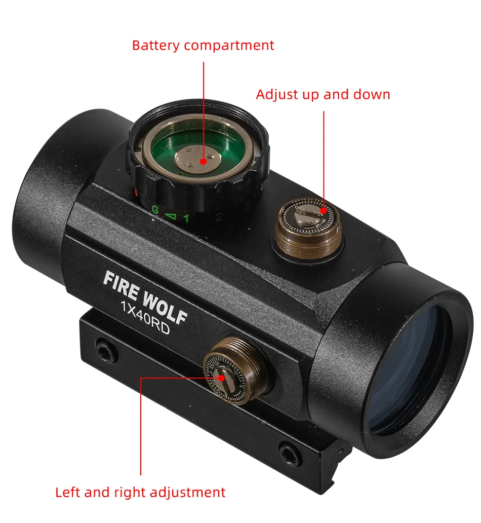 FIRE WOLF-mira telescópica holográfica táctica para caza, mira telescópica de Rifle ajustable, puntos rojos y verdes, 1x40