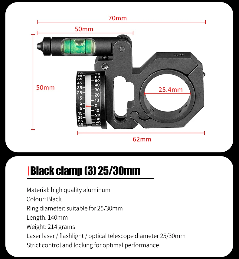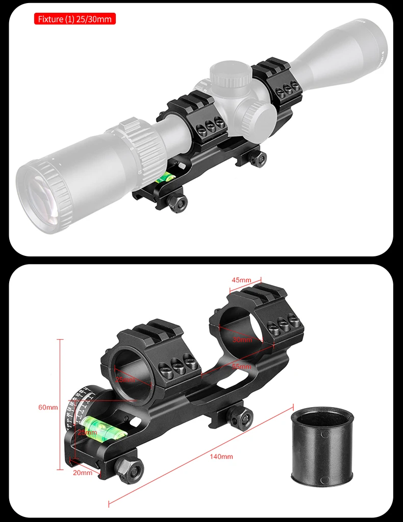 FIRE WOLF-Soporte para mira telescópica de nivel de burbuja, soporte de caza, anillos indicadores de grado de 25,4/30/34/35mm, abrazadera de tubo de equilibrio