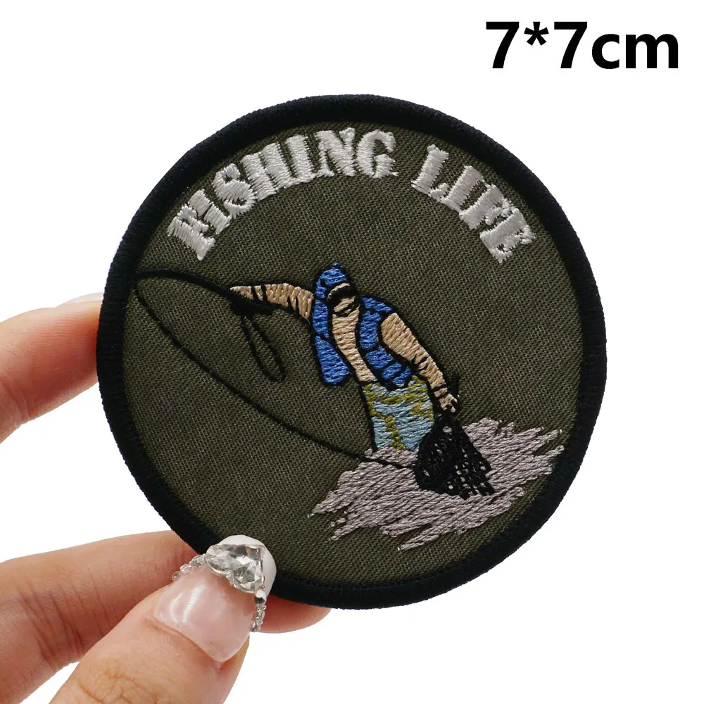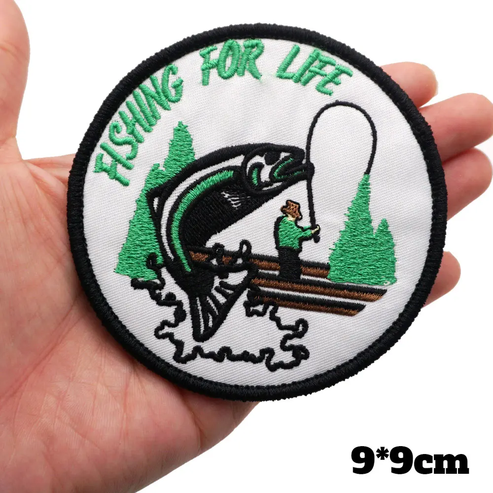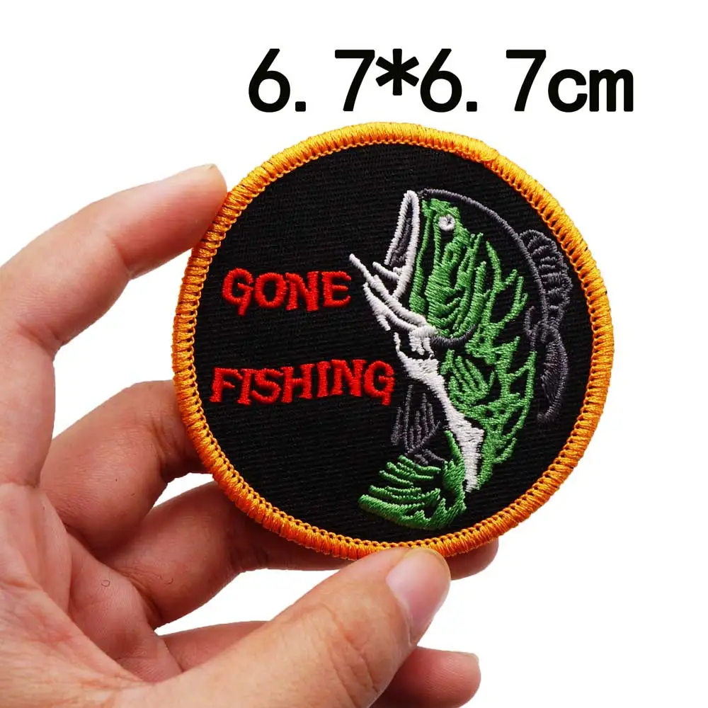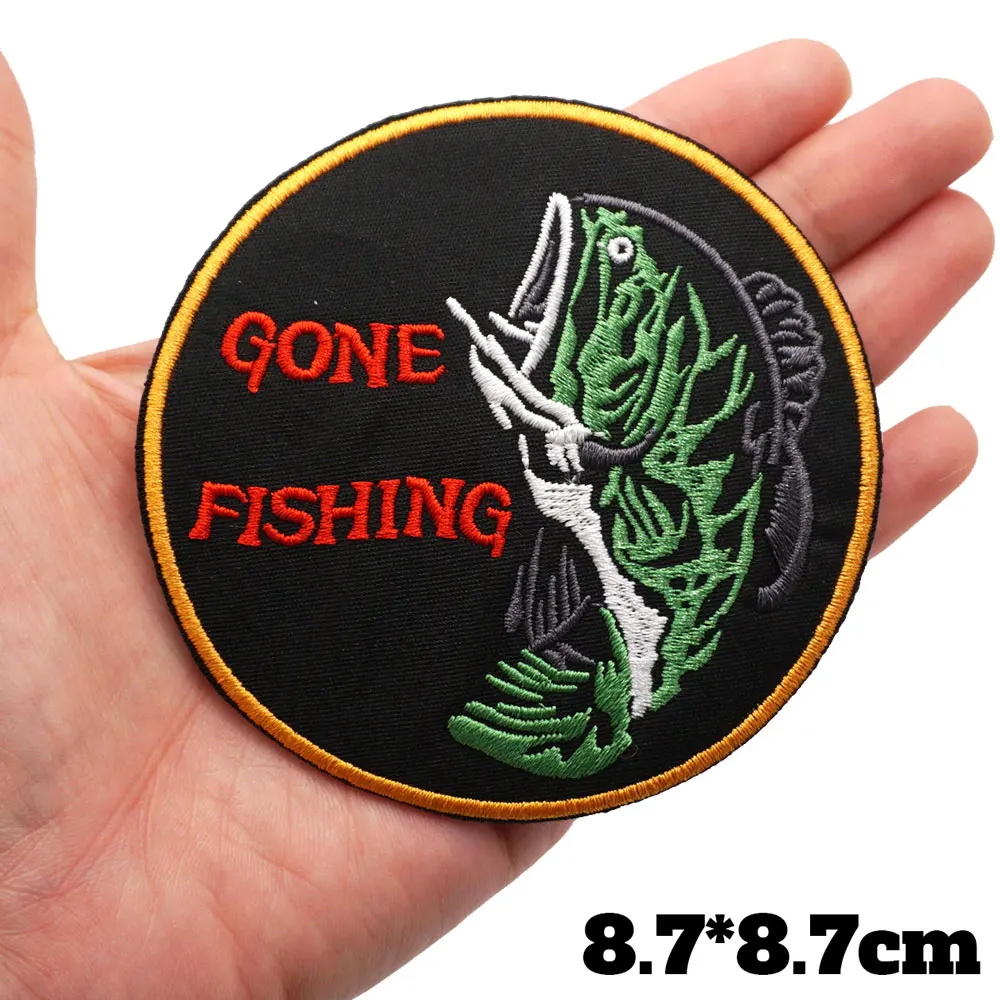 Fishing life gone pesca parches bordados apliques etiqueta de costura punk biker Band Rock ropa insignias con respaldo de gancho
